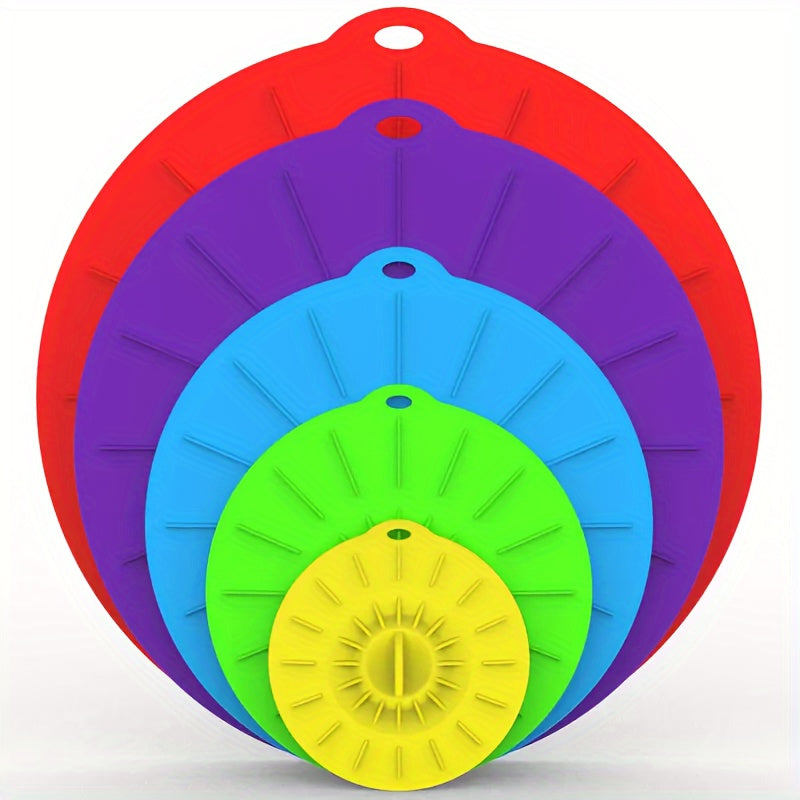 [Heat Resistant Silicone Covers] 5pcs Heat Resistant Silicone Microwave Covers - Reusable Suction Lids for Bowls, Cups, Plates, Pots & Pans - Oven, Fridge & Freezer Safe, Dishwasher Safe, Easy to Clean - Fits Various Sizes (4