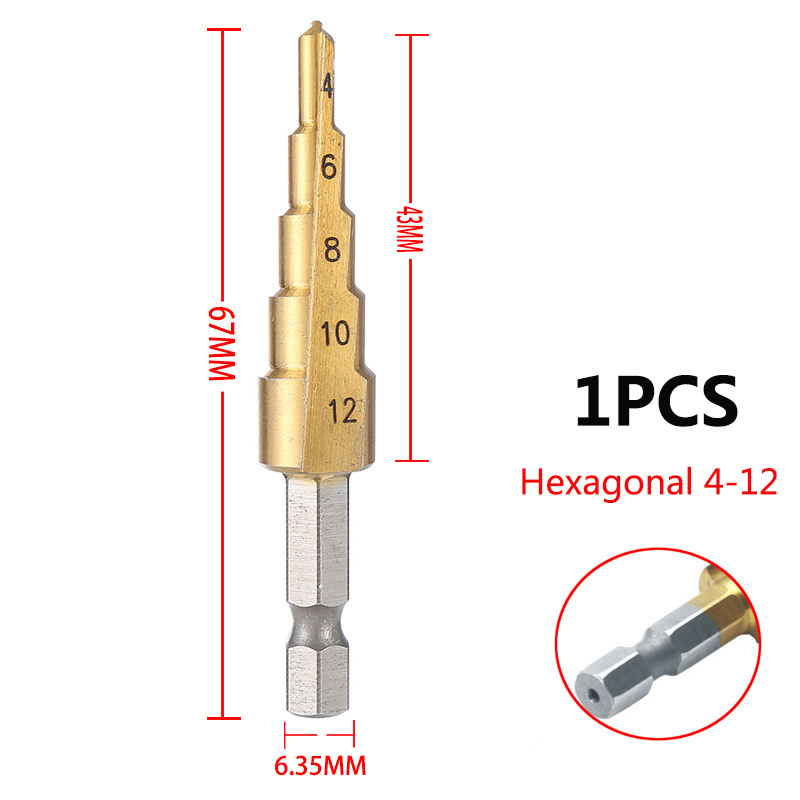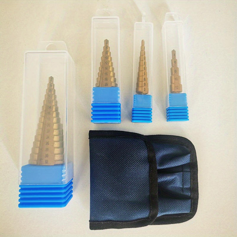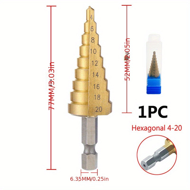Multi-Size Titanium-Coated HSS Step Drill Bit Set - Precision Drilling for Wood & Metal, Efficient and Versatile