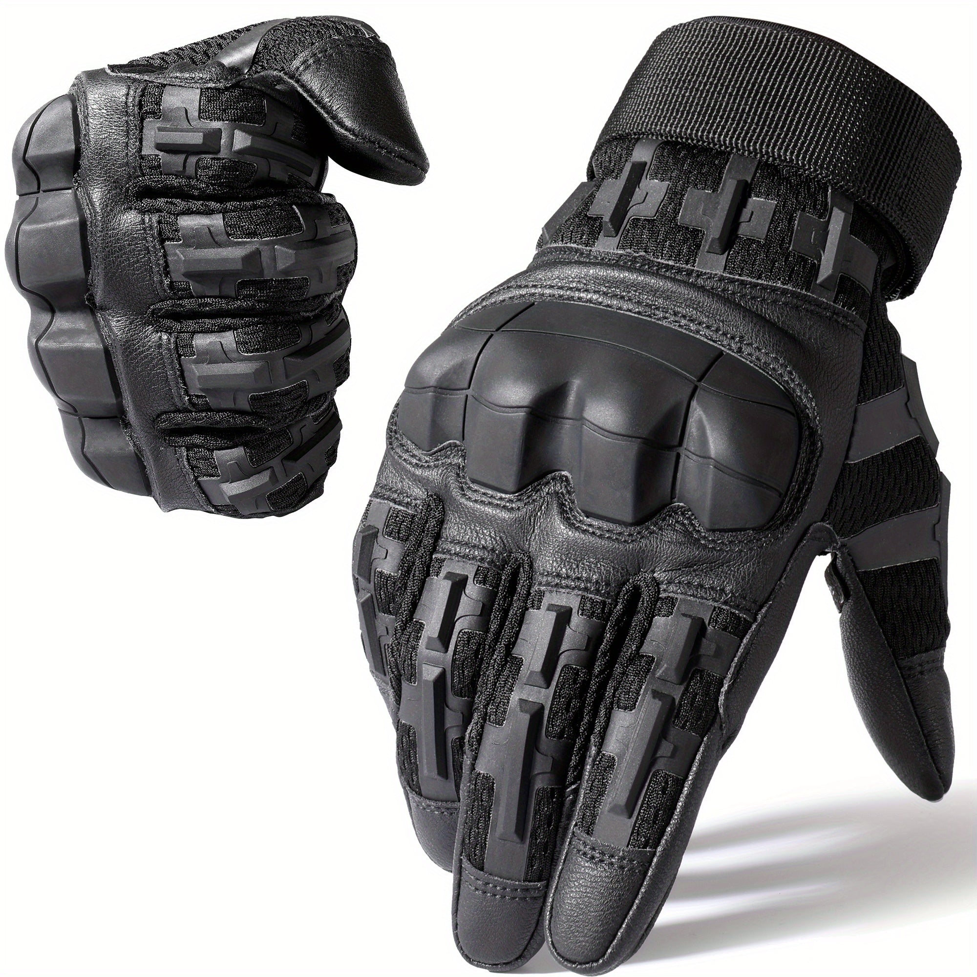 1 Pair Meromibe Men's Touch Screen Full-Finger Gloves - Black Nylon Blend with Secure Wrist Strap, Padded Palm & Flexible Rubber Knuckles for Cycling, Outdoor Sports & Halloween Costume, MEROMIBE