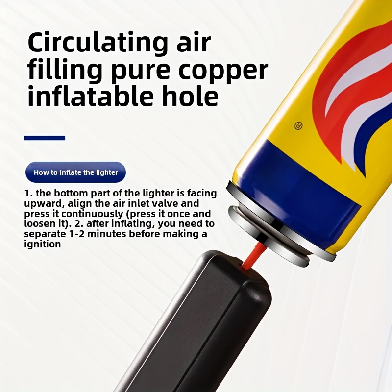 Avertissement : Lors du remplissage avec du gaz butane, veuillez vous assurer que la direction est vers le bas ; sinon, le gaz risque de ne pas se remplir correctement.
