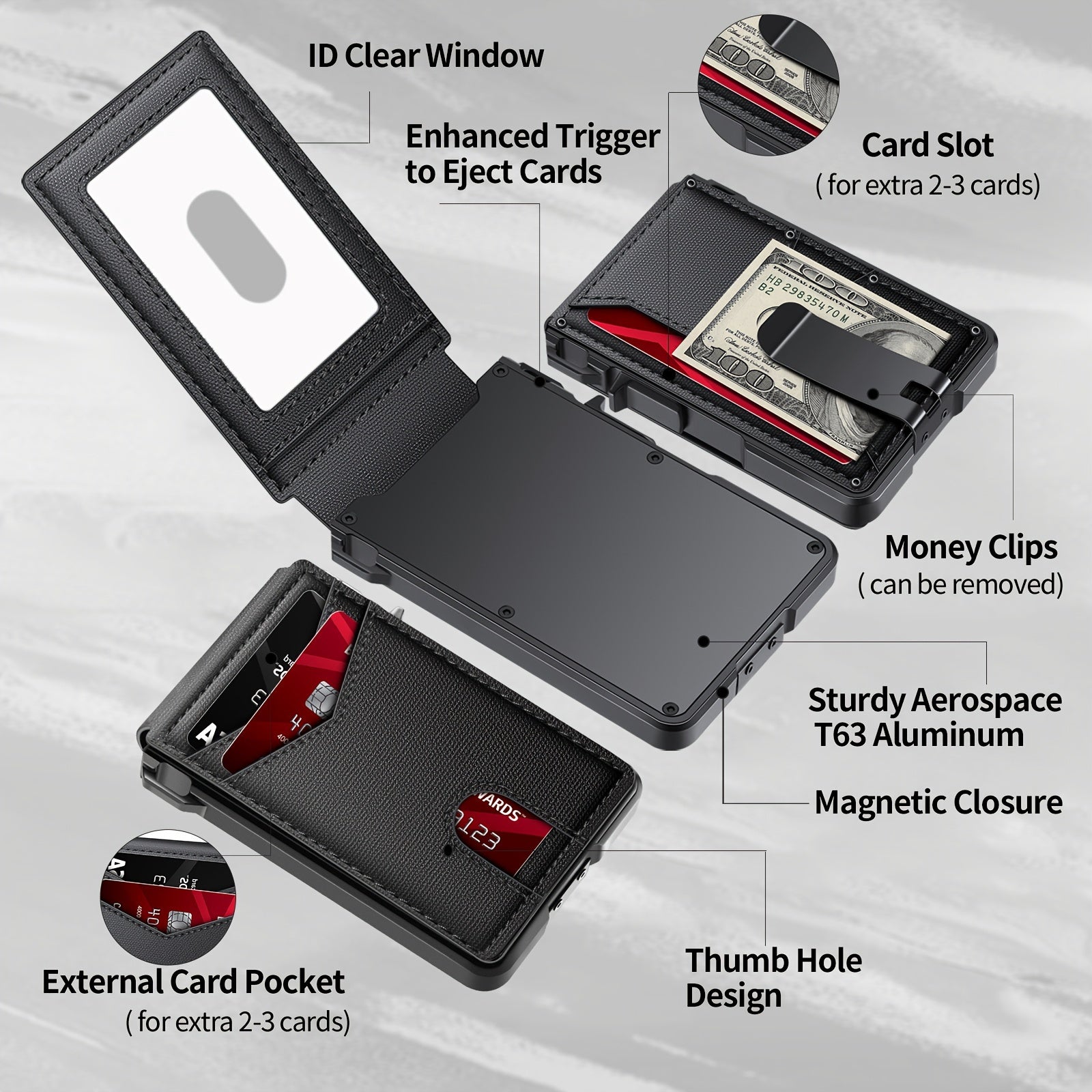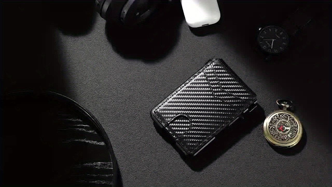 1pc Portefeuille Slim RFID Bloquant pour Hommes avec Clip à Billets - Texture en Fibre de Carbone, Support de Carte de Crédit en Alliage d'Aluminium, Design Bifold Sécurisé pour Professionnels.