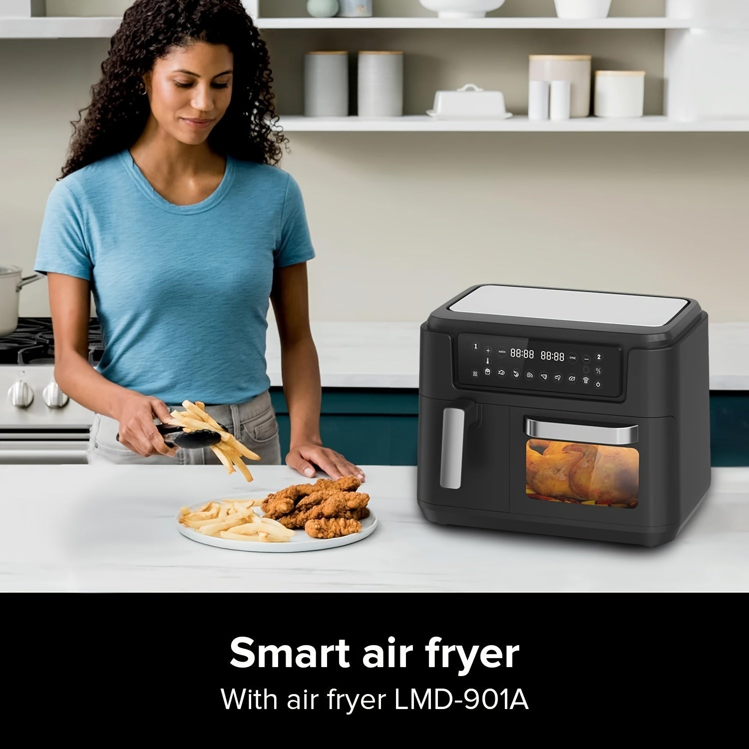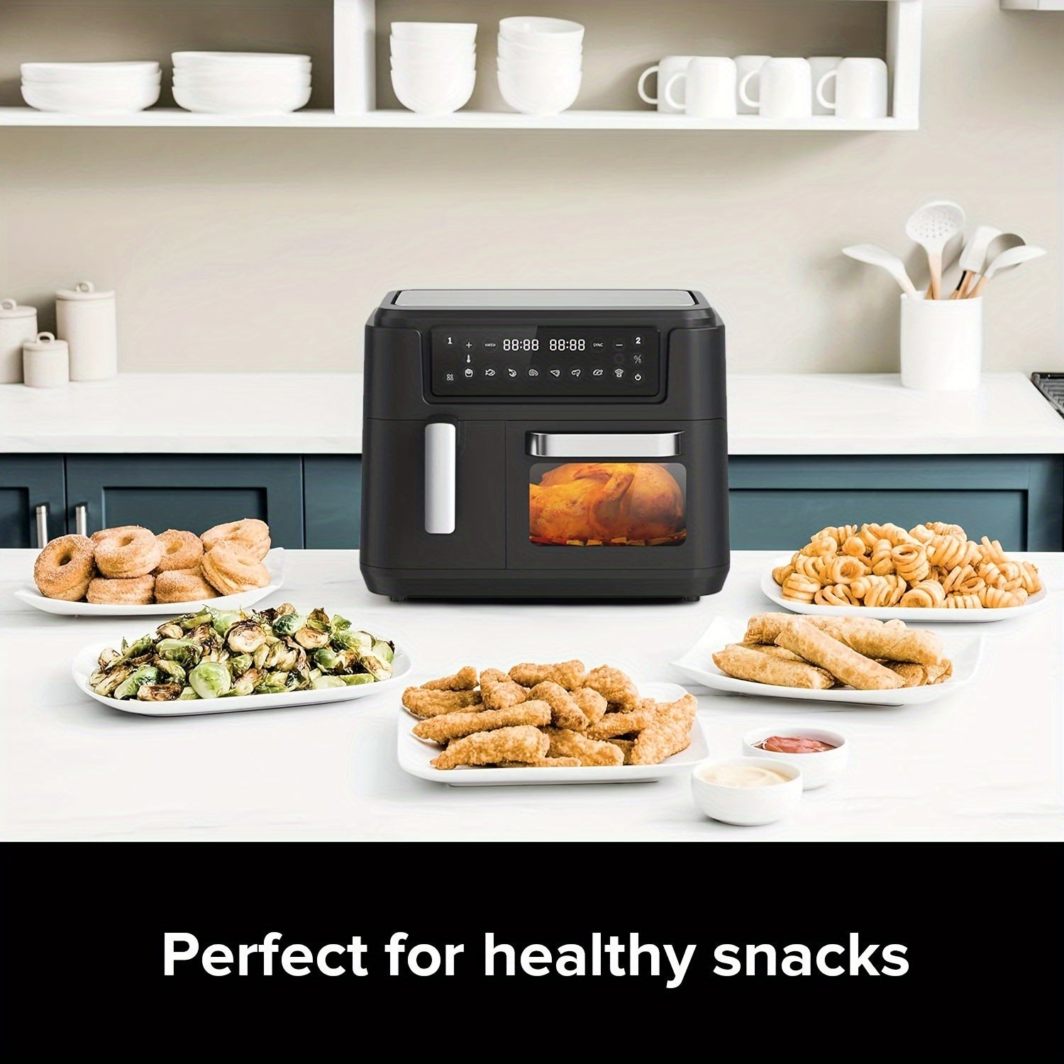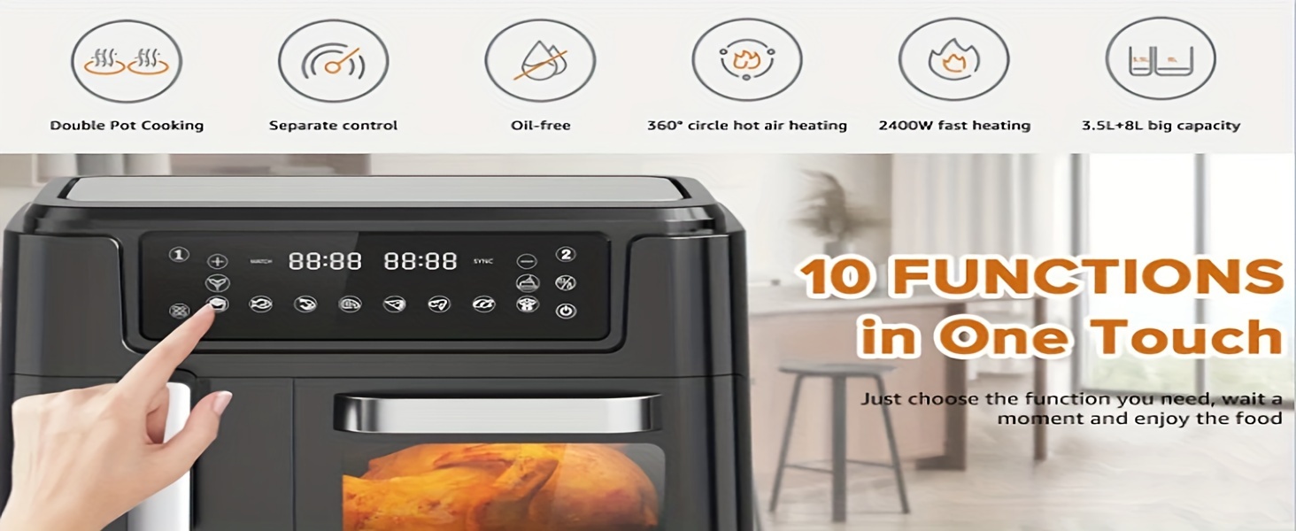Friteuse à air intelligente à écran tactile double panier de grande capacité XL 3,5QT - Grills électriques avec fonction 2-en-1 de friteuse à air et four 8QT, friture saine, grillade, déshydratation, et plus, design pratique, rapide et gain de place.