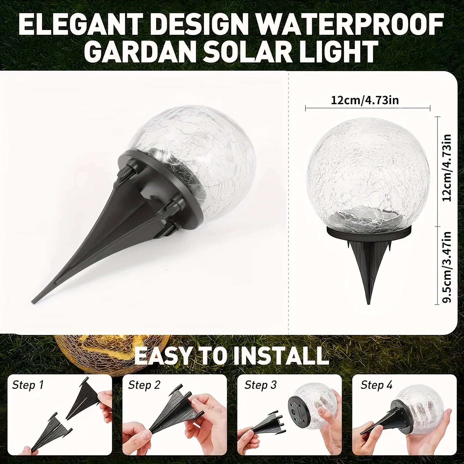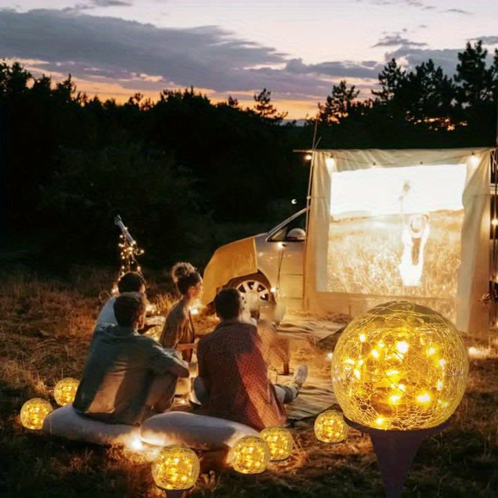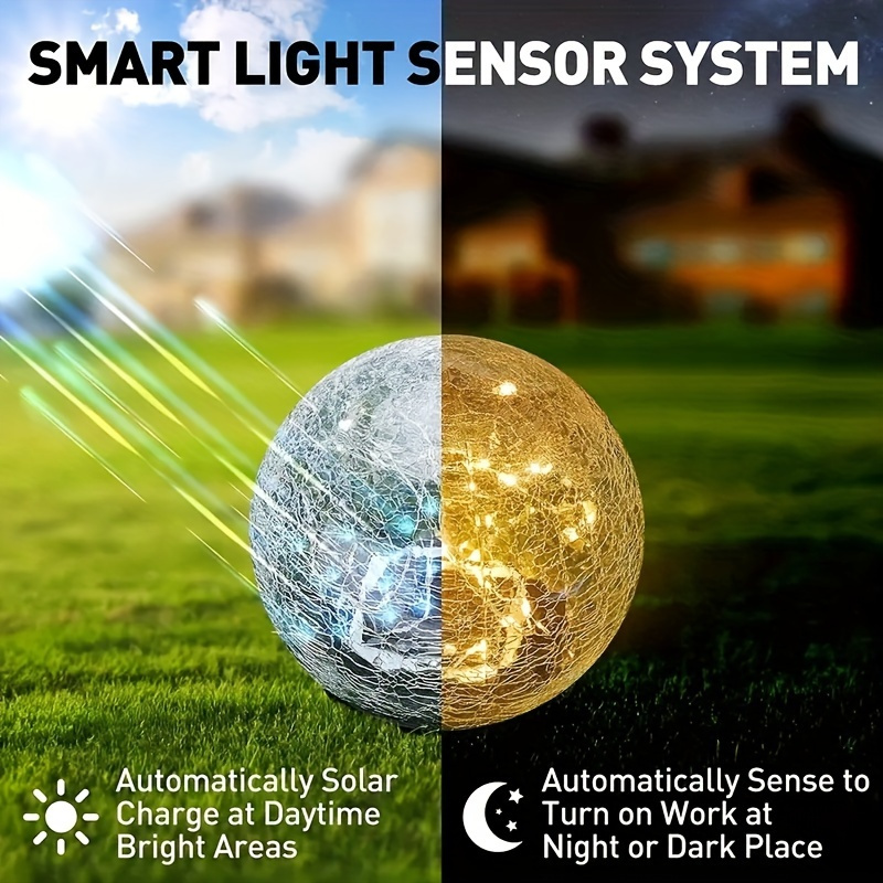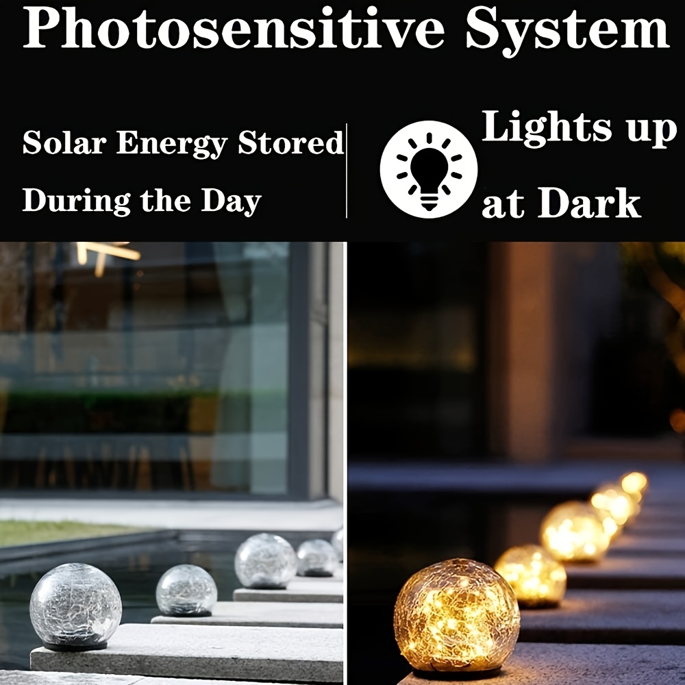 4pcs Lumières Extérieures à Panneaux Solaires en Verre Craqué – Lumières de Chemin de Jardin avec Piquets, Charge de 2 Heures, Utilisation de 6-8 Heures, Idéal pour la Saint-Valentin & Décor de Mariage, Idée Cadeau pour Patio, Pelouse & Allée