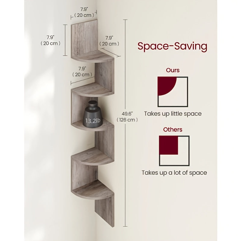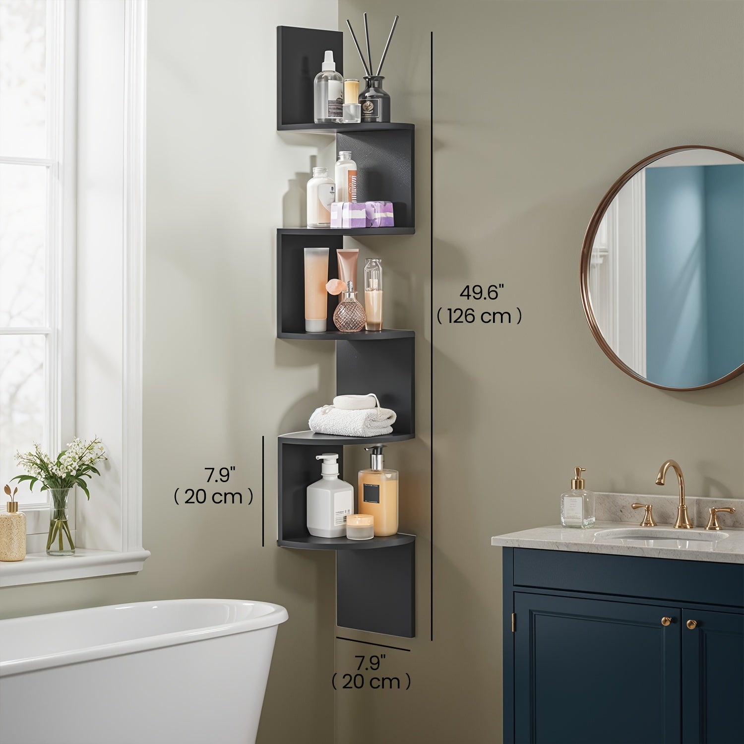 [Durable et Robuste] Fabriqué à partir de matériaux de haute qualité, chaque étagère de cette unité d'étagères d'angle à 5 niveaux peut supporter jusqu'à 13,2 lb, offrant un support fiable pour vos livres, décorations ou articles de toilette.