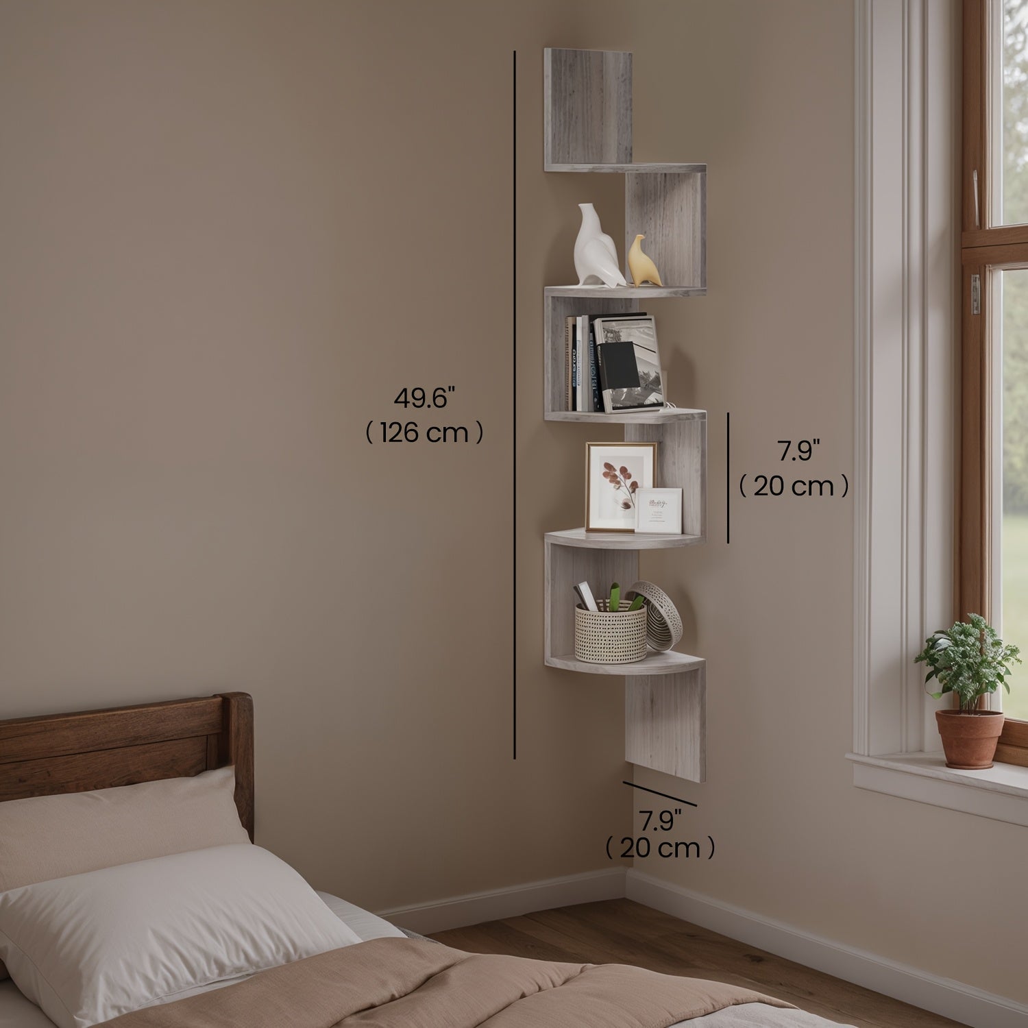 [Design Moderne] Avec son design en zigzag et ses étagères courbes en greige chiné, cette étagère d'angle murale dégage une touche rustique charmante pour améliorer votre salon, salle de bain et bureau à domicile.