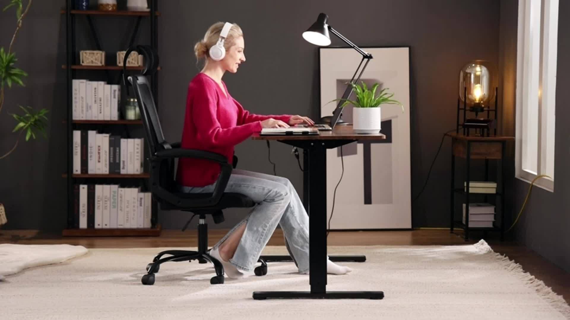 63" Adjustable Height Electric Standing Desk - Modern Wooden Workstation with 4-Panel Display Setup, Storage Shelf & Hooks for Home Office, Bedroom, or Gaming Room, Workspace Organizer | Sleek Metal Frame | Iron Construction,