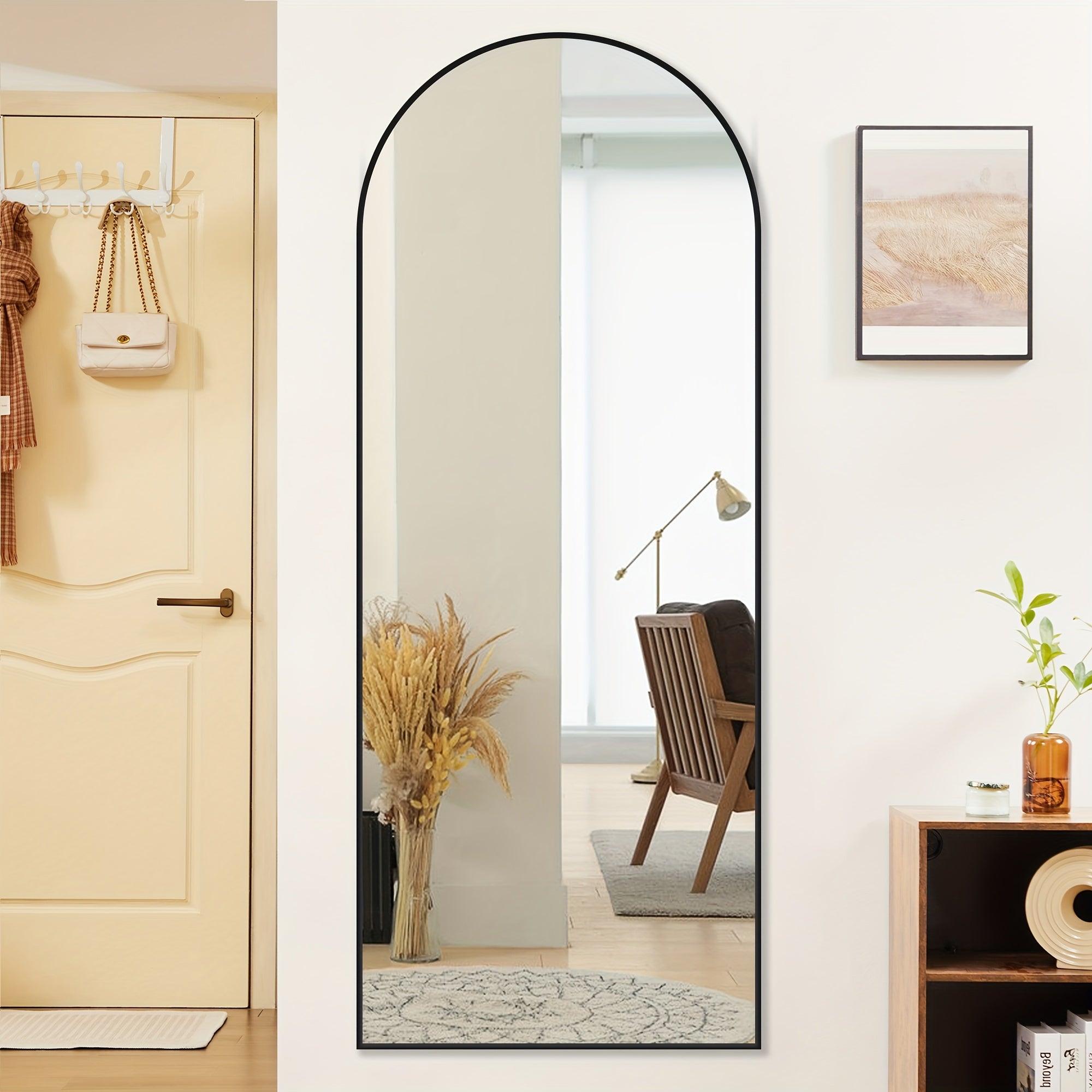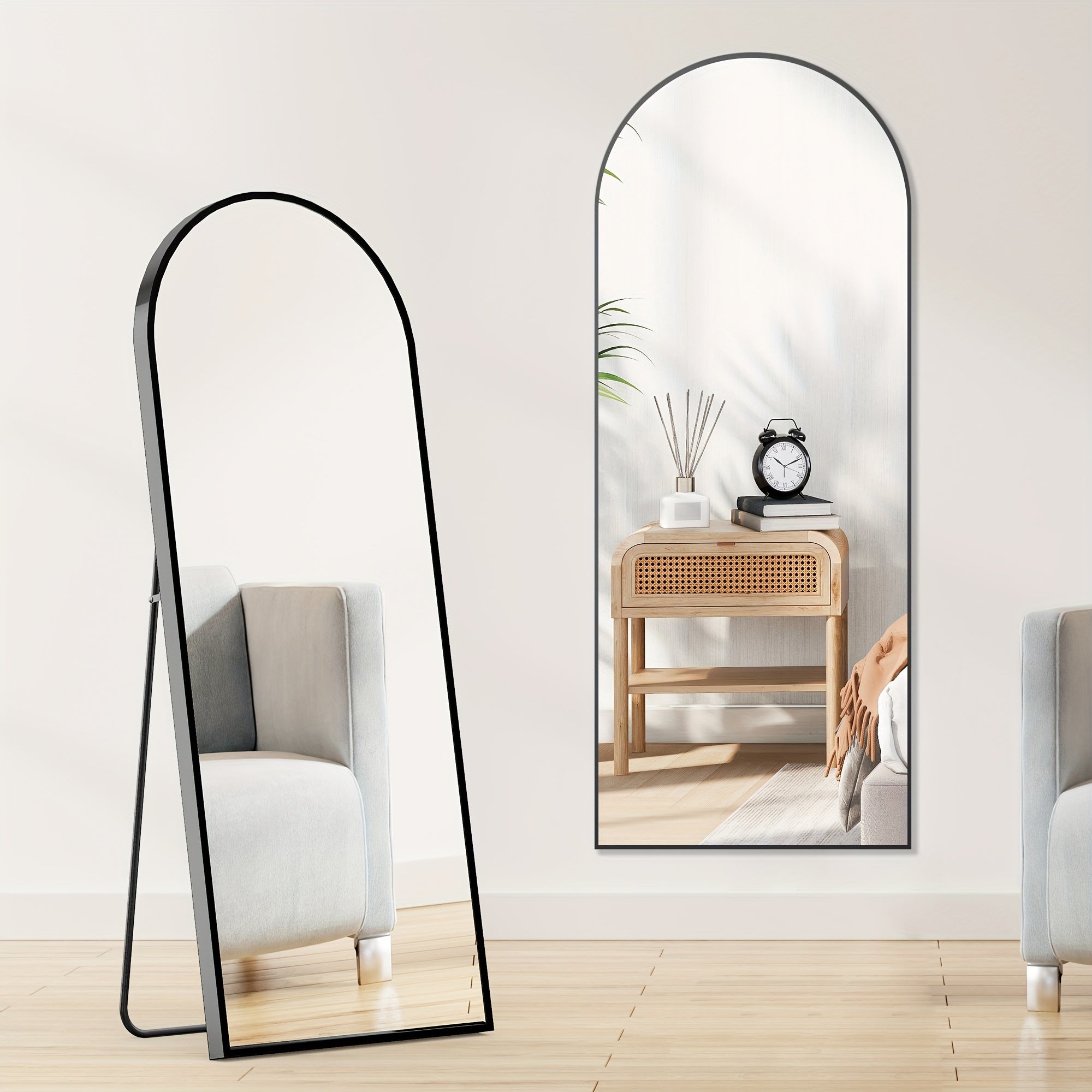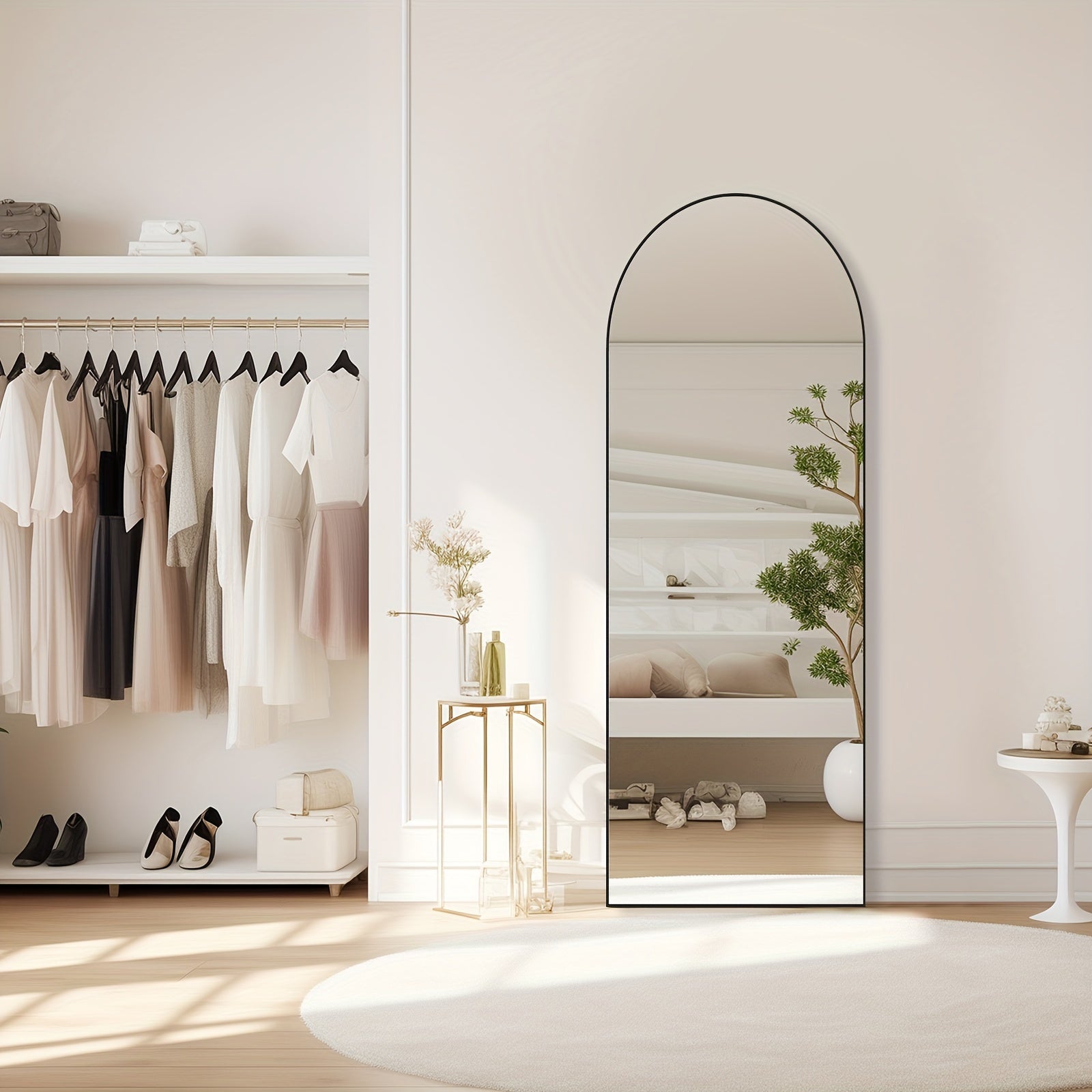 Miroir plein longueur noir arqué 64"x21", miroir mural debout, incliné ou monté pour chambre, salon, vestiaire, miroir en aluminium, moderne