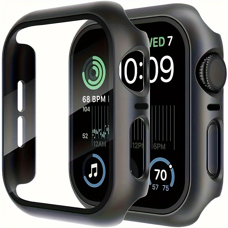 Coque en PC dur ultra-mince et cristal clair avec protecteur d'écran en verre trempé HD pour Apple Watch Series Ultra/10/9/8/7/6/5/4/SE - Bumper à couverture complète résistant aux rayures