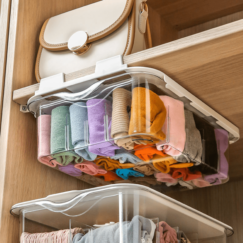 [Durable Organizer] 15-Layer Space-Saving Wall-Mounted Underwear & Socks Organizer | Durable Waterproof Plastic with Transparent Shelves, Lightweight Design for Closet Storage, 11.42x8.66x3.54 Inch