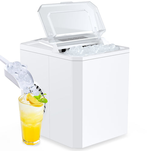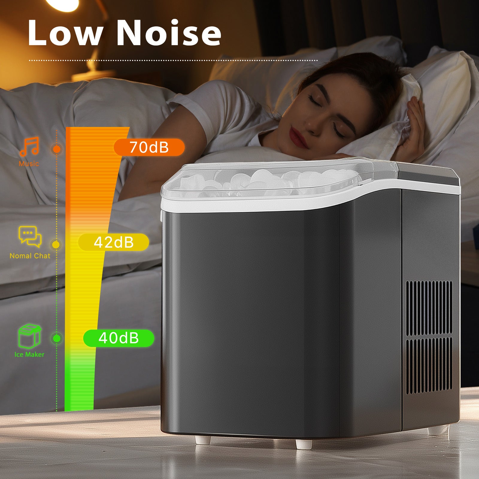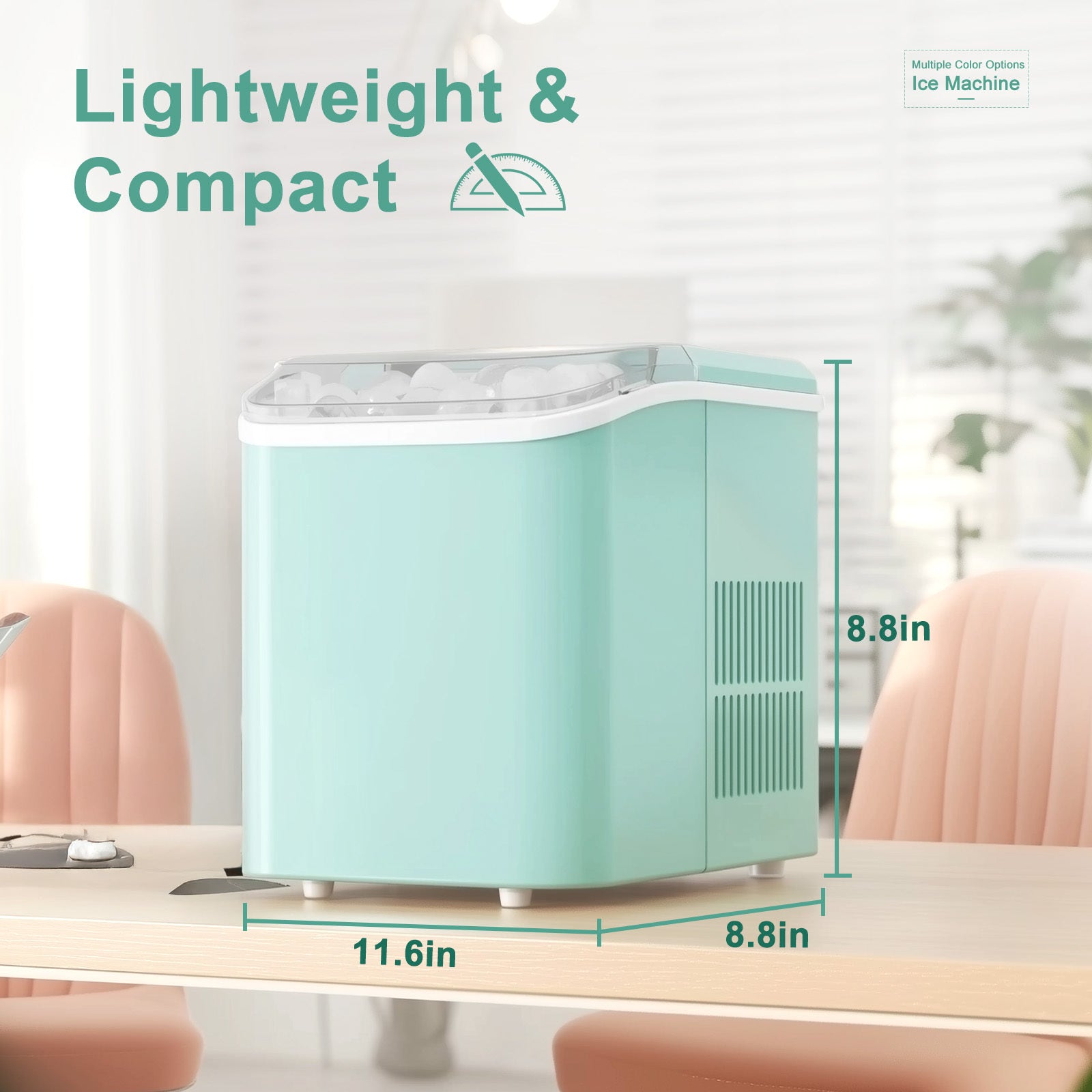 Upgraded Countertop Ice Maker with Free Ice Shovel, 9 Cubes in 6 Mins, Portable Self-Cleaning Ice Machine, 2 Sizes of Bullet Ice, Ice Scoop, Basket and Handle Included, Ice Cube Maker for Home Kitchen Party Camping