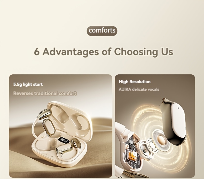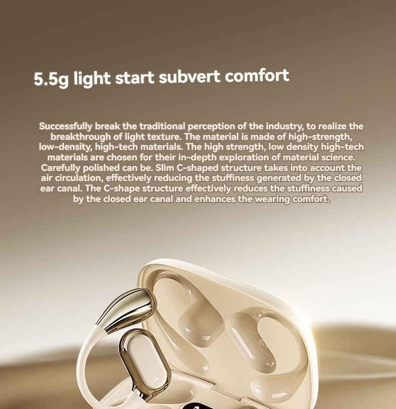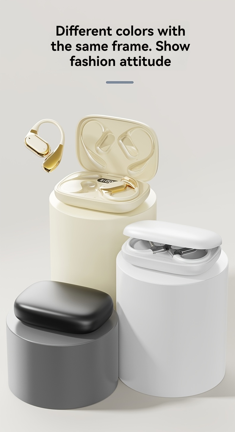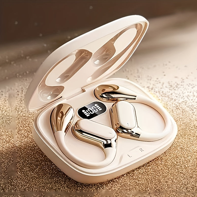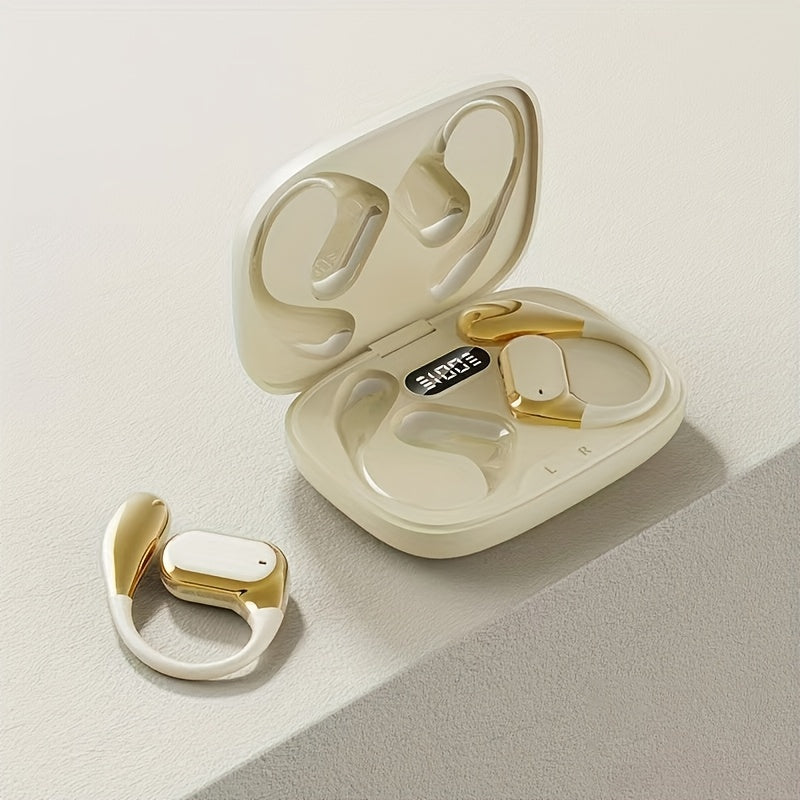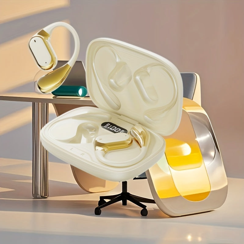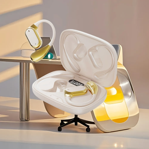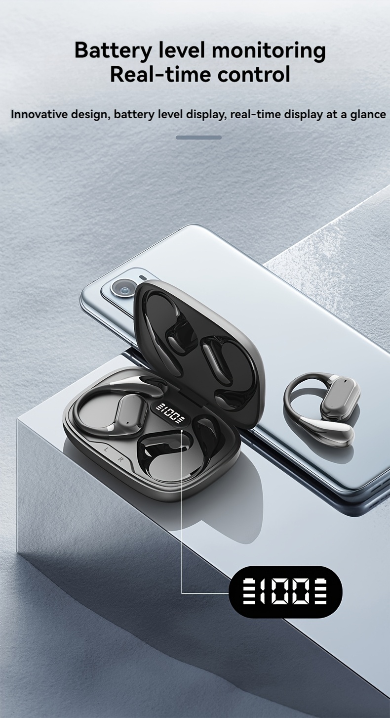 [Wireless Earbuds] High-Fidelity Wireless Earbuds with Digital Display Charging Case | Long Battery Life, Low Latency, Non-In-Ear Hook Design, Touch Volume Control, Built-in Mic, Type-C Charging, Compatible with Gaming & Mobi