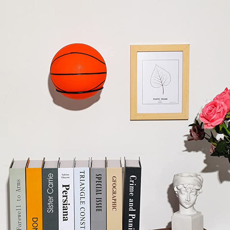 C'è un supporto a muro per pallacanestro, è realizzato in materiale di ferro di alta qualità e ha una lunga durata. Il supporto pratico può aiutarci a organizzare le palline in modo ordinato a casa, nei centri commerciali o nelle sale espositive.