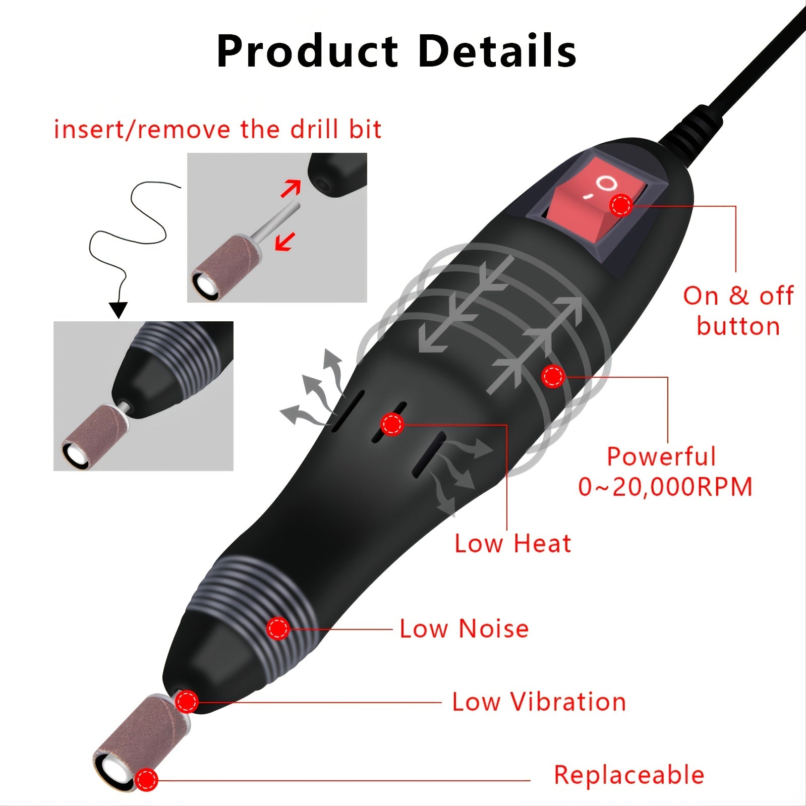 156pcs Professional Electric Nail Drill Machine Set - Low Noise, Vibration-Free, Adjustable Speed, LED Light, Ergonomic Design - For Acrylic Nail, Gel Art, Nail Polish Remover, Pedicure, Glazing, Polishing, and Grinding