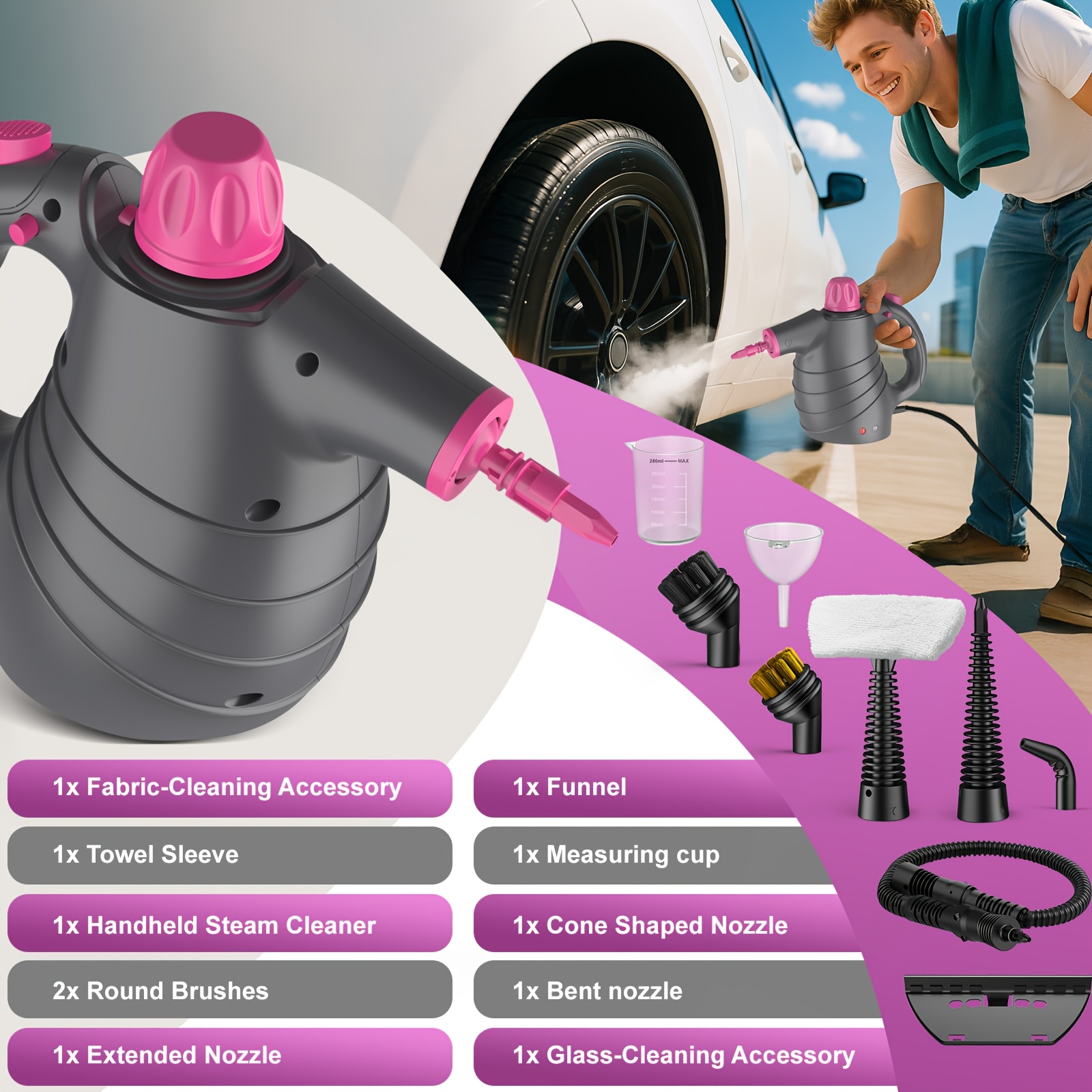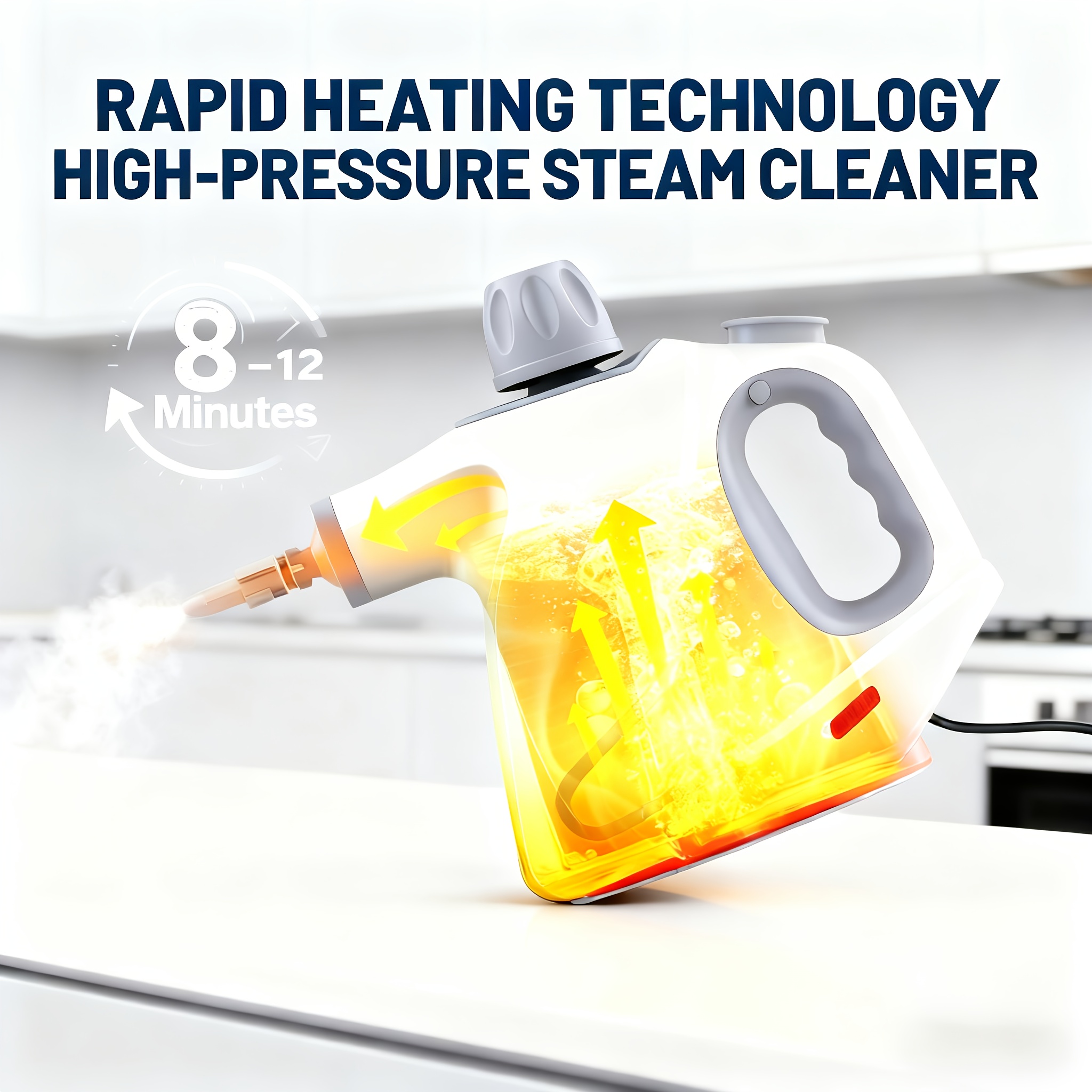 1pc 1050W Handheld Steam Cleaner | 12 Brush Heads, Fast Heat-Up, Chemical Free, Lightweight & Portable, Large 11.83oz Water Tank, Metal & Plastic, Us Plug, Versatile for Home, Car, Floor & Furniture