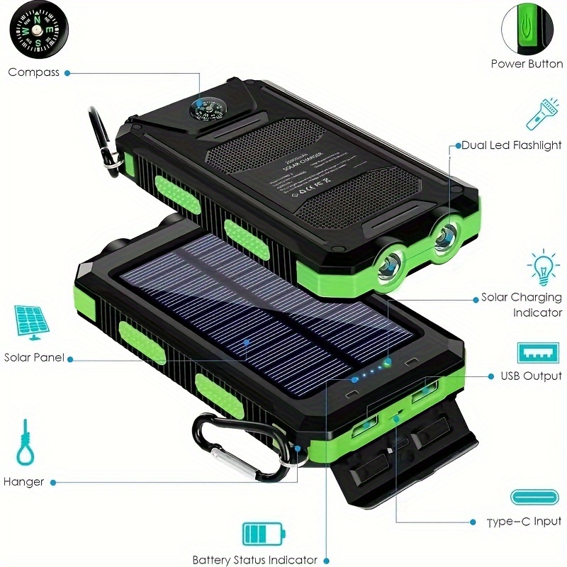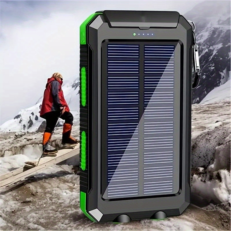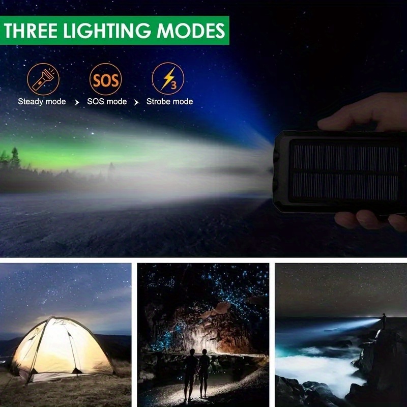1pc, Portable Solar Power Bank with External Battery Charger and Strong LED Light, 2 USB Charging Ports for Outdoor Camping, Hiking and Emergency Use