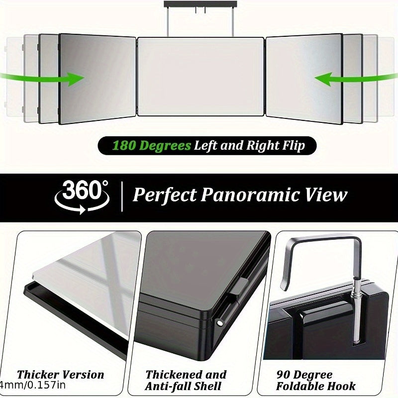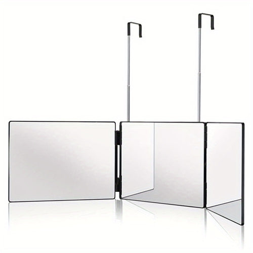 360° rotating 3-Way Trifold Mirror - Height Adjustable with Hooks for Effortless Self-Hair Cutting & Makeup Application