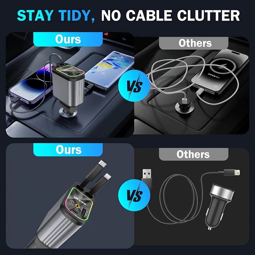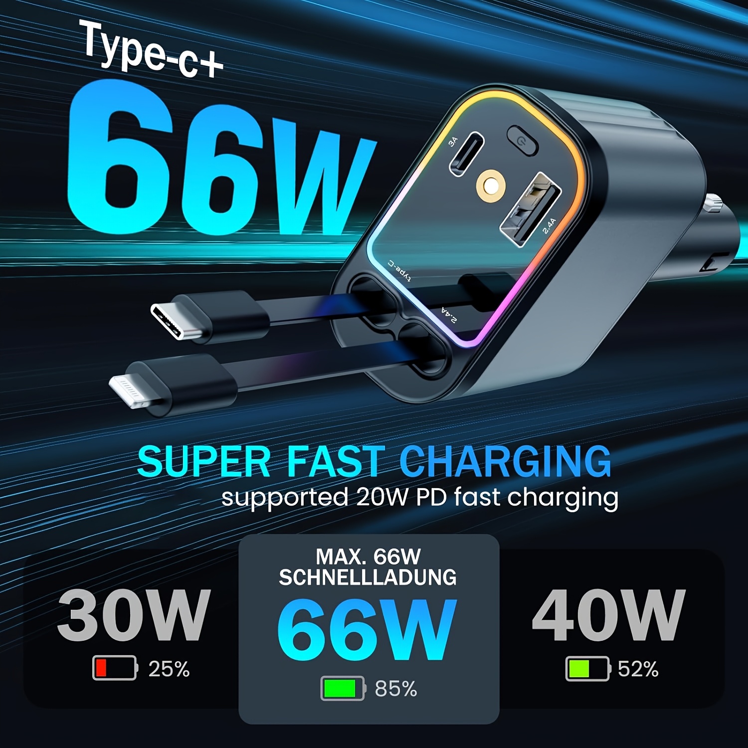 4-in-1 Super Fast Retractable Car Charger With Star Projector Night Light, Car Atmosphere Light, Fast Car Charger For IPhone 15/14/13/12/11 And For Android (Dark Grey)