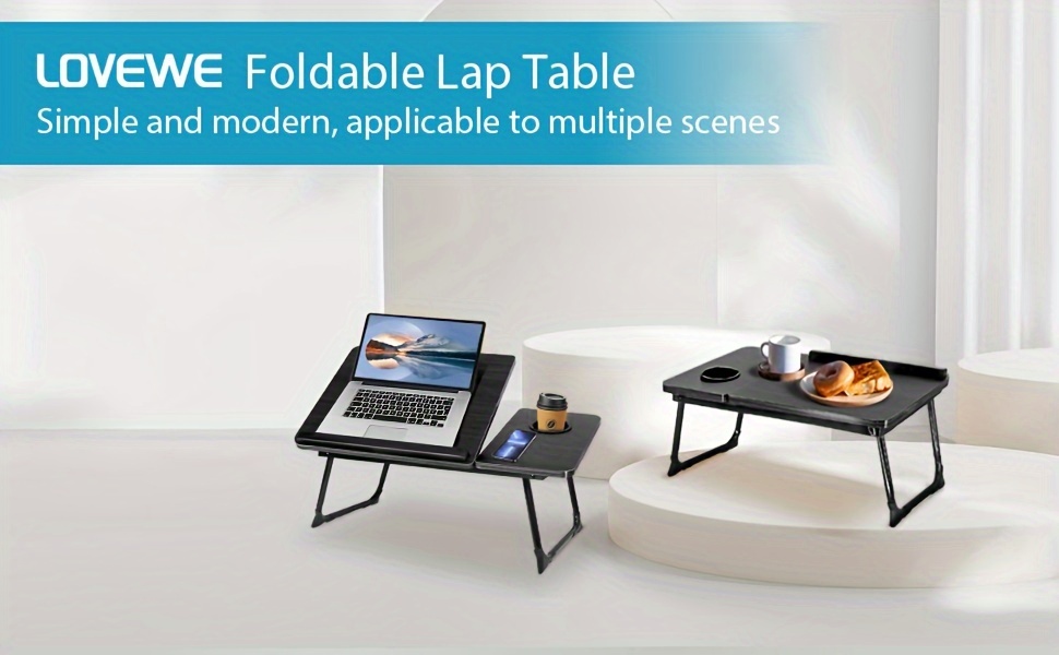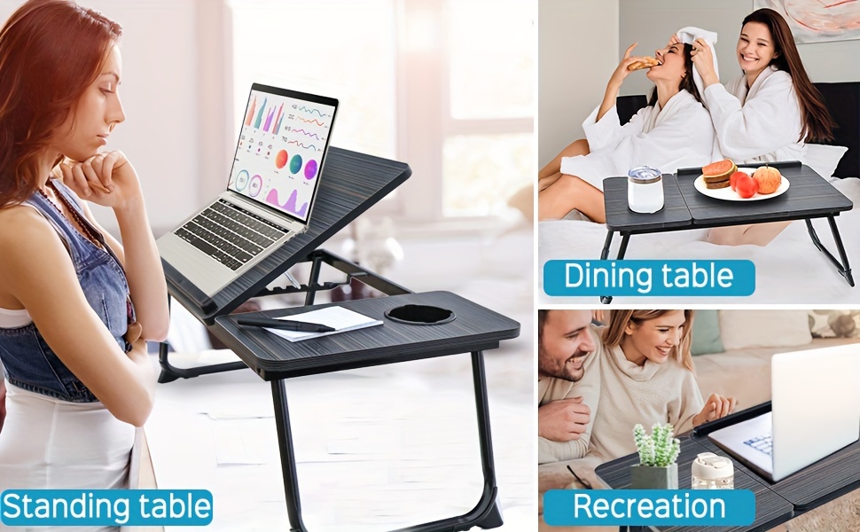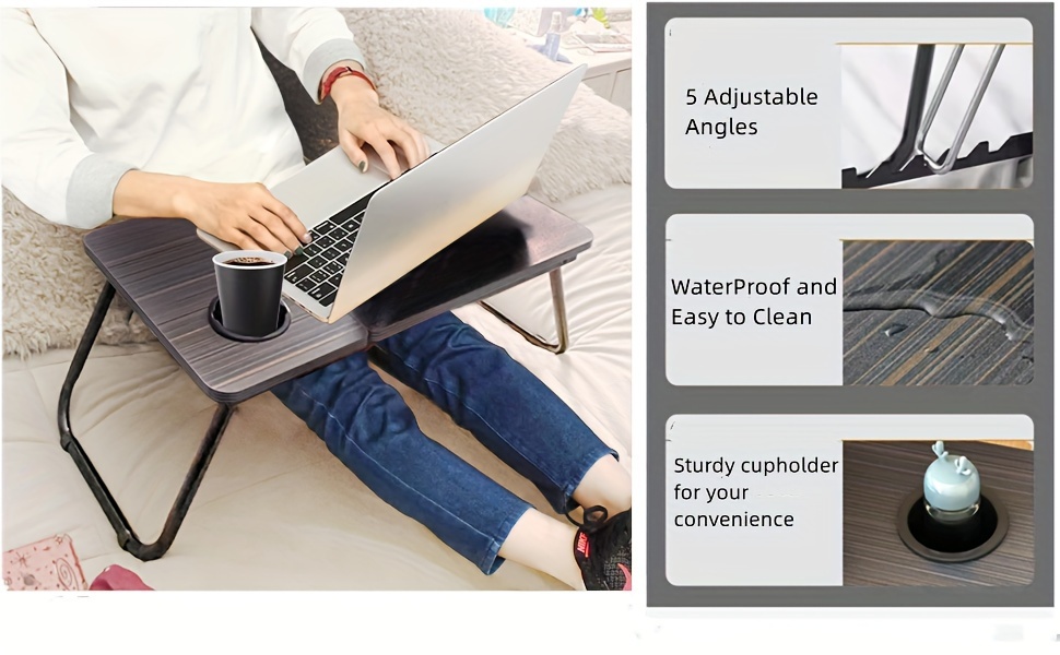 Adjustable Height Foldable Lap Table, Sturdy and Resistant Multifunctional Portable Desk with Cup Holder for Home Office, Study, and Reading