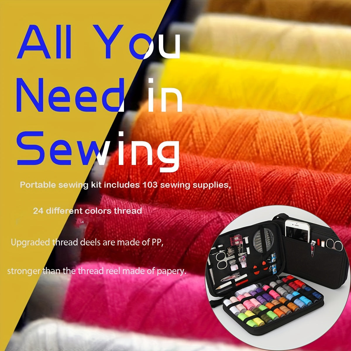 [BOBODE Sewing Kit] BOBODE 43/104pcs Sewing Kit - 24-Color Threads, Needle and Thread Kit for Small Fixes, Basic Mini Travel Sewing Kit for Emergency Repairs, Color: Black, No Printing