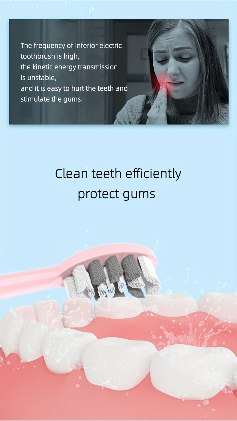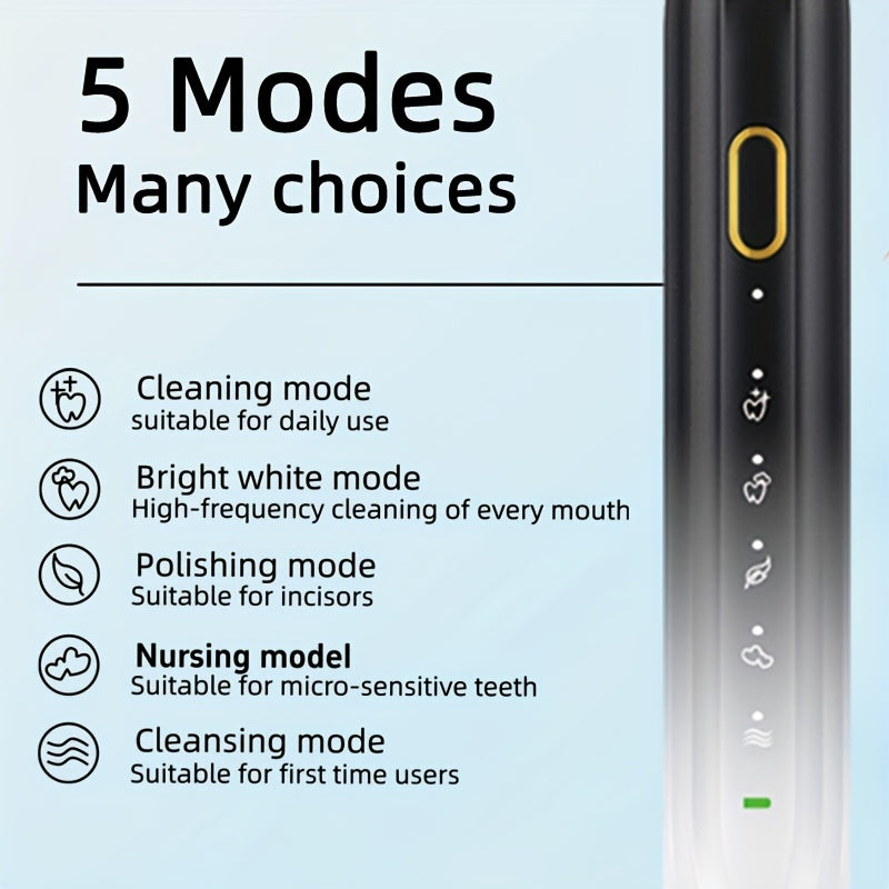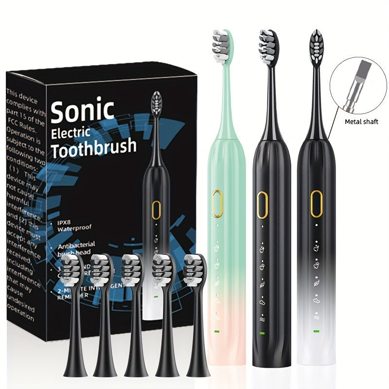 IPX8 Sonic Electric Toothbrush with USB Charging, Couples with Replaceable Head Metal Shaft Electric Toothbrush for Adults, Men And Women, Smart Timer And 5 Replacement Brush Heads