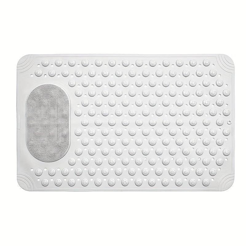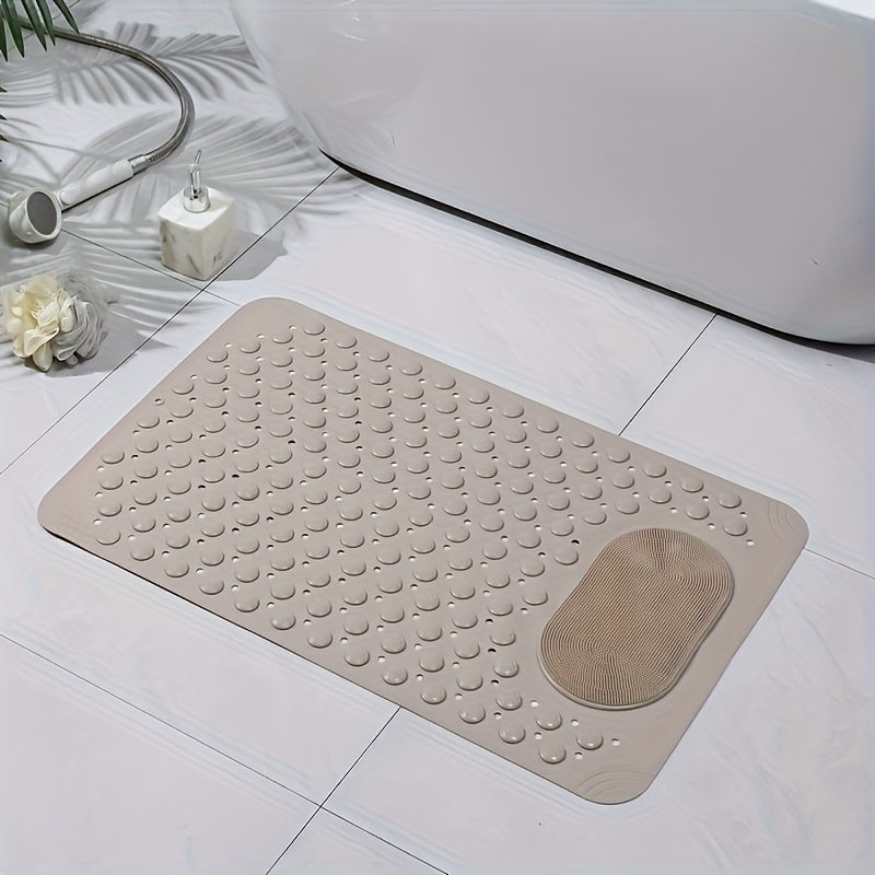 Light Blue Textured Anti-Slip Bath Mat with Drainage Holes - PVC Shower Stall Mat for Home Bathroom, Circular Pattern Design, 0.8cm Thick, 2600g/㎡, Rectangular Shape, Bathroom Accessories