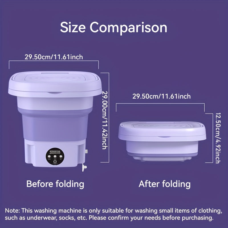 Portable Foldable 8L Mini Washing Machine - 3 Modes, Deep Cleaning, Soft Spin Dry for Business Trip, Home, RV, Washing Delicates