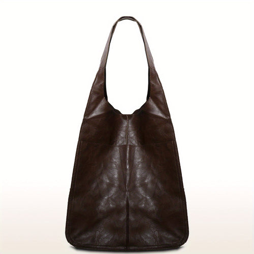 [Retro Beach Tote] 1pc Retro Large Beach Tote Bag - High Capacity Zipper Shoulder Sling Bag with Fixed Straps - Solid Color Multifunctional Synthetic Handbag for Women, Beach Accessory, Sturdy Construction