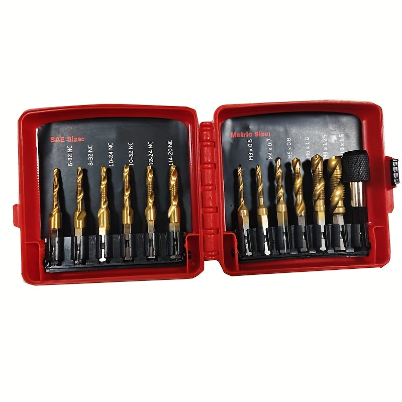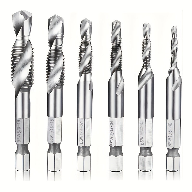 [Titanium Drill Bit Set] GOXAWEE 6pcs Titanium Drill Tap Combination Bit Set - 1/4" Hex Shank Screw Tapping Countersink Drill Bits - Metric Thread M3 M4 M5 M6 M8 M10 Taps Tool for Wood, Plastic & Metal