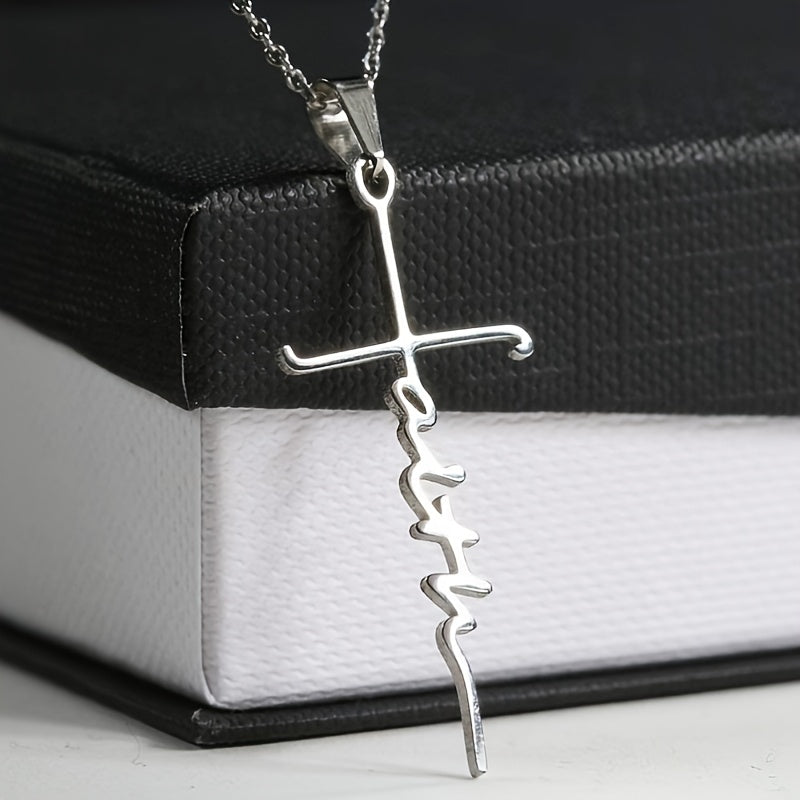 1pc New Stainless Steel Faith Word Church Prayer Religious Pendatn Necklace