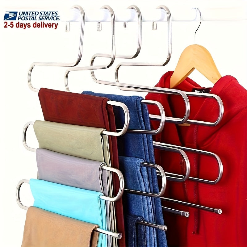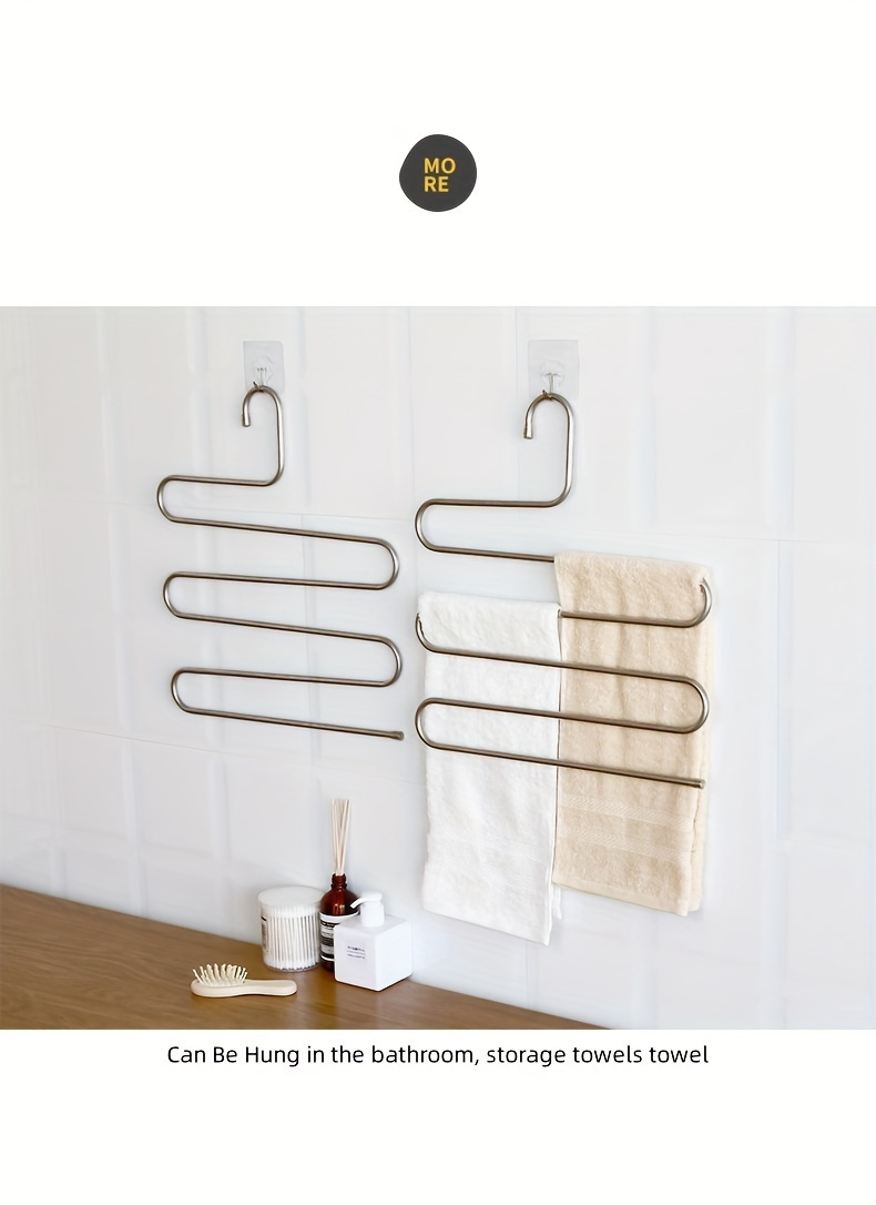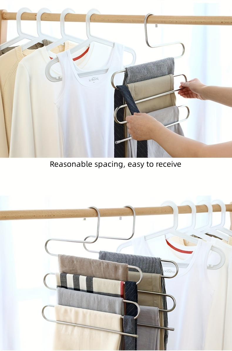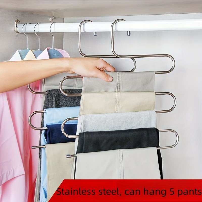 1pc Stainless Steel Multi-Layer S-Shaped Pants Hanger, Space Saving Non-Slip Closet Organizer for Trousers, Towels, Scarves