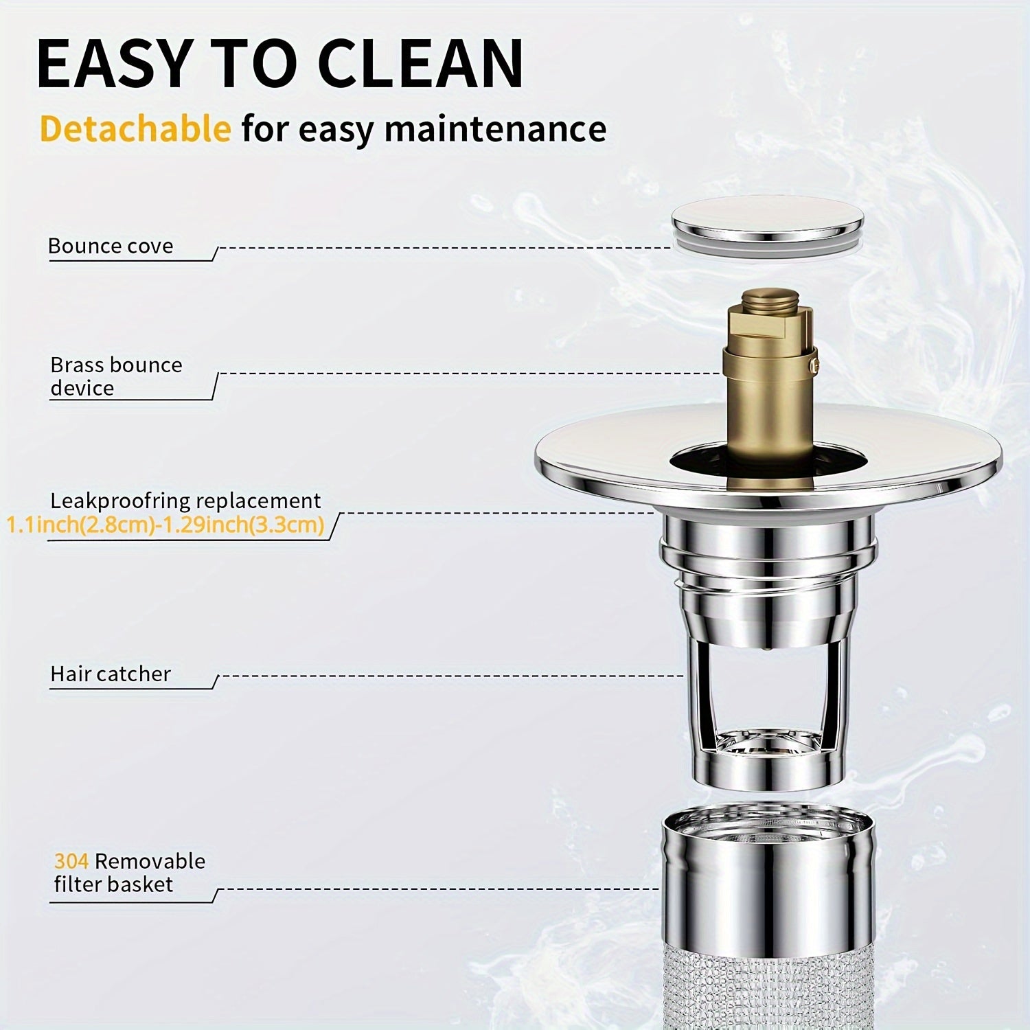 A Practical Solution To Prevent Hair And Valuable Items (such As Jewelry) From Entering The Bathroom Sink Or Kitchen Drain. This Sink Hair Collector Includes A Pop-up Mechanism That Can Easily Open And Close The Drain Pipe, As Well As A Detachable Stainless Steel Filter Basket For Easy Cleaning.
