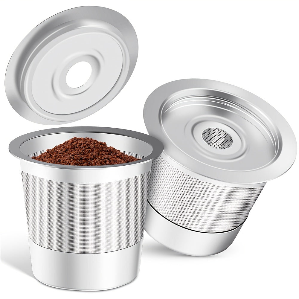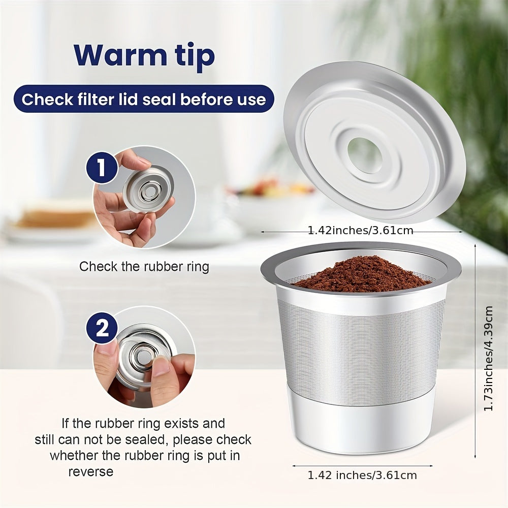 2pcs Premium Stainless Steel Reusable K-Cup Coffee Pods, 1.0 Compatible - High-Quality & Durable with 360° Perforated Brewing Design for Optimal Flavor Extraction, Rust-Resistant with Sealing Rubber Ring, Ideal for Home & Of