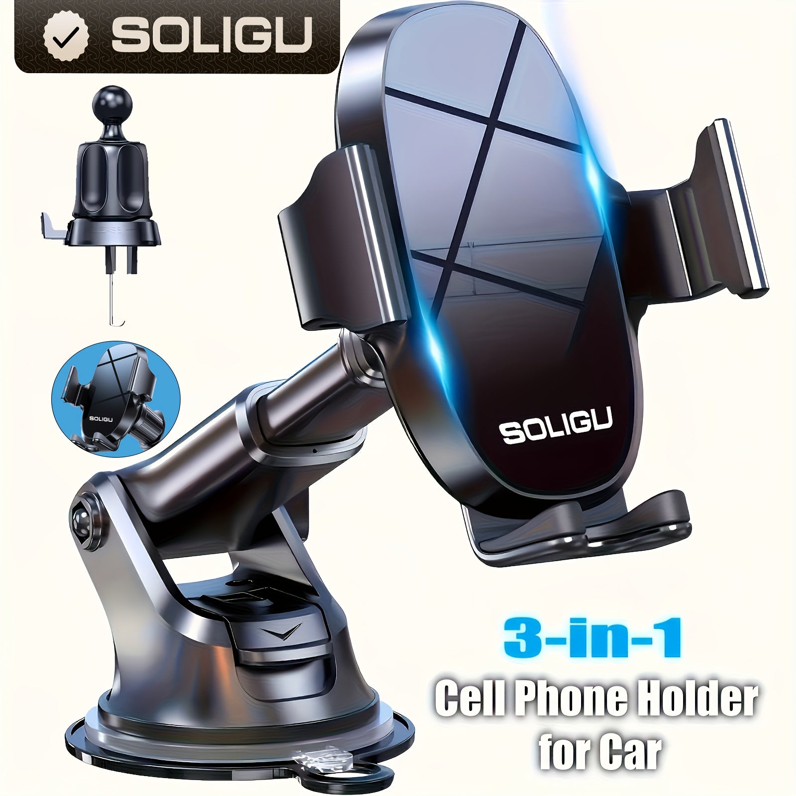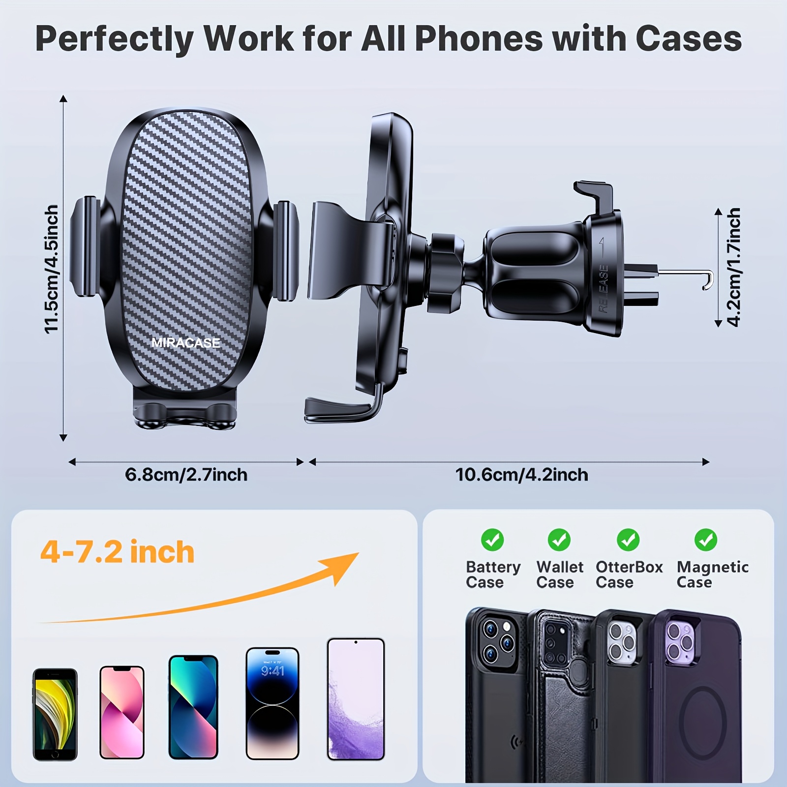 [3-in-1 Phone Holder] 3-in-1 Car Phone Holder Mount, Universal Cell Phone Holders for Your Car Dashboard Air Vent, Adjustable Car Phone Holders Fit for All Phones, By Miracase