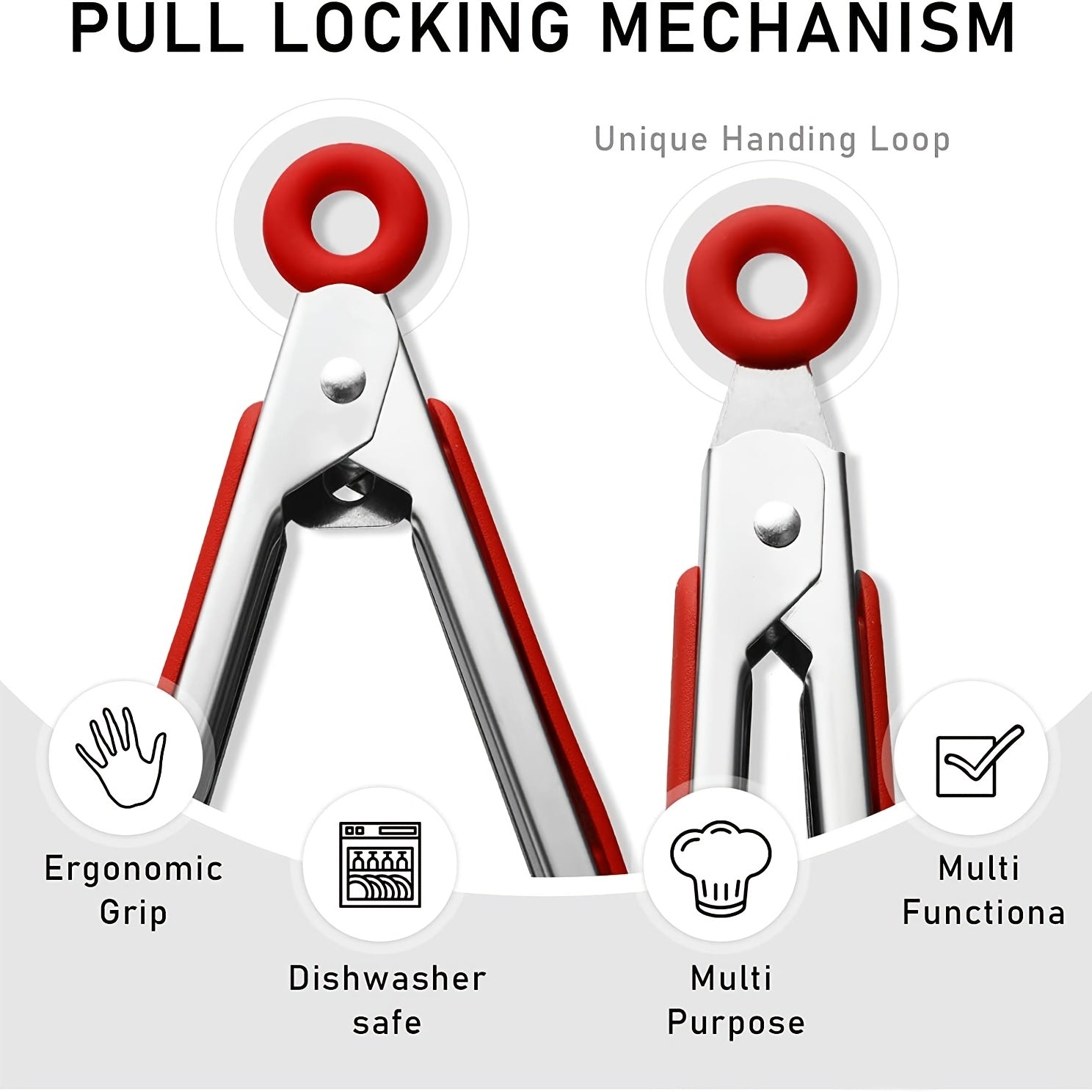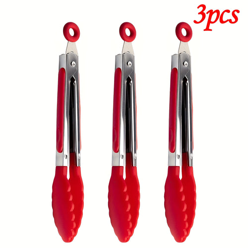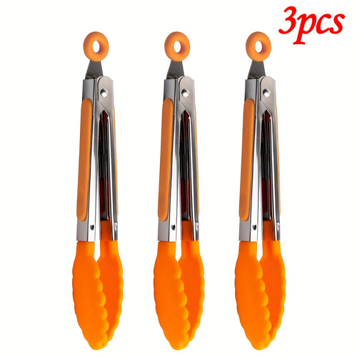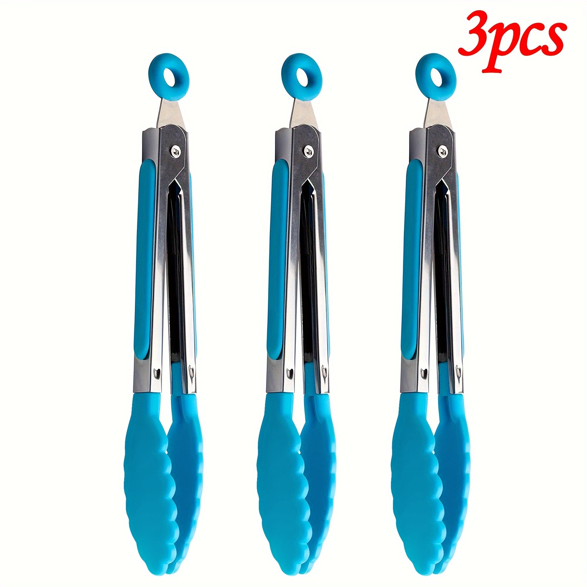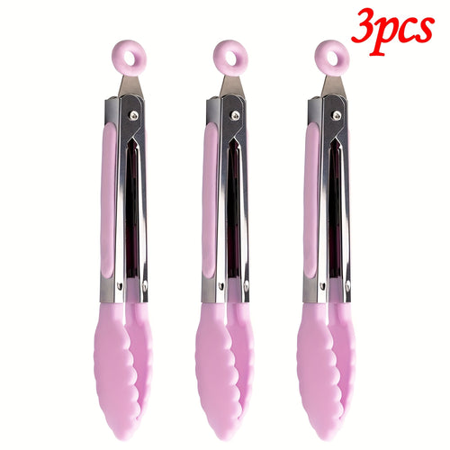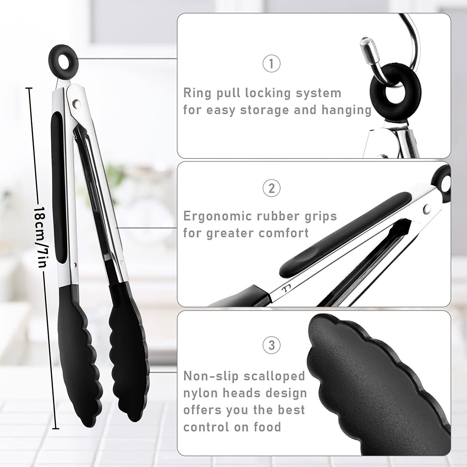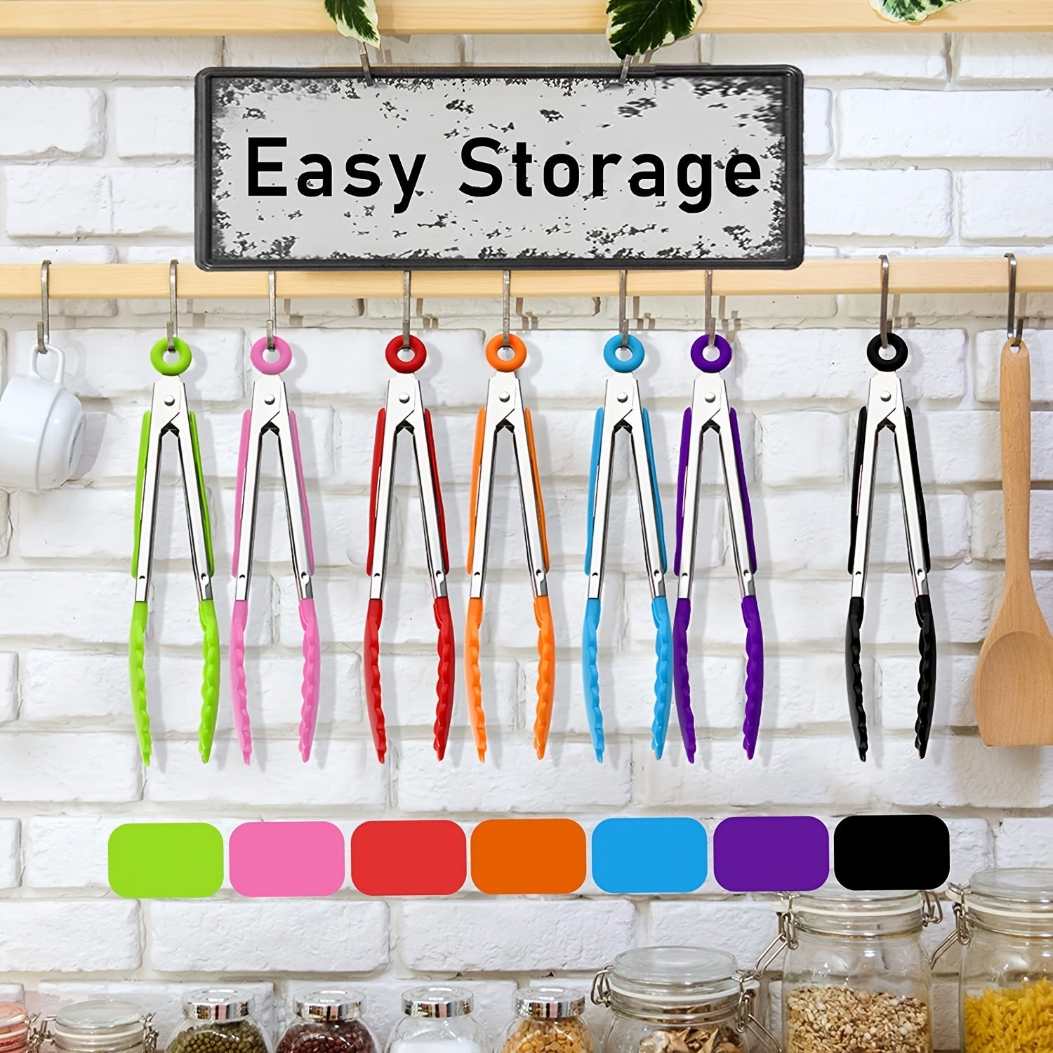 3pcs / 7pcs Kitchen Tongs, 7 Inch Small Silicone Tongs with Stainless Steel Silicon Handles and Nylon Tips, Heat Resistant Non-Stick Cooking Tongs, Mini Locking Food Tongs for Cooking Salad Grilling and Frying