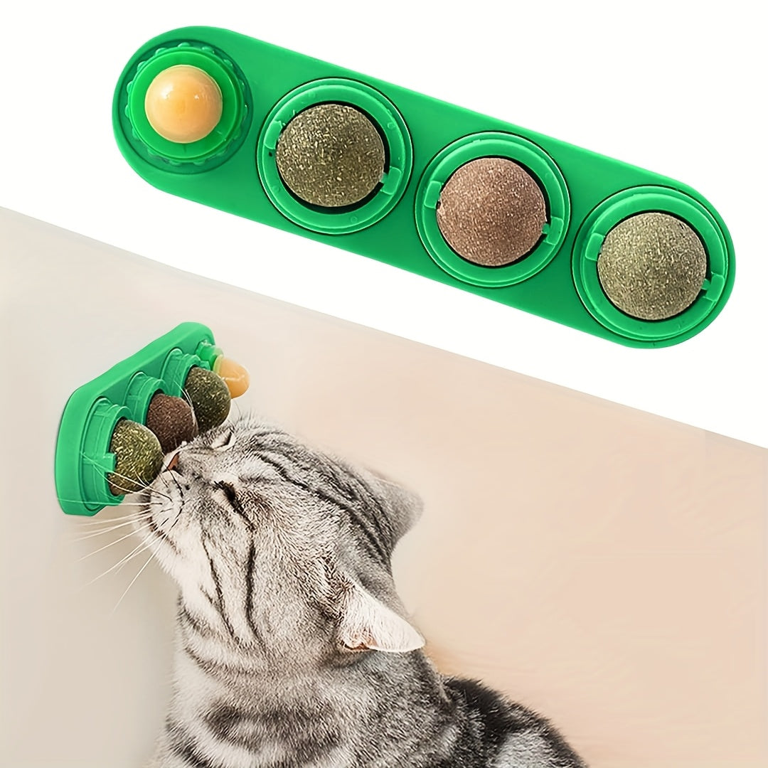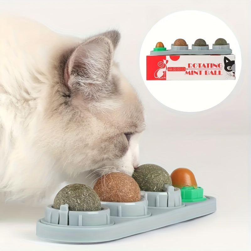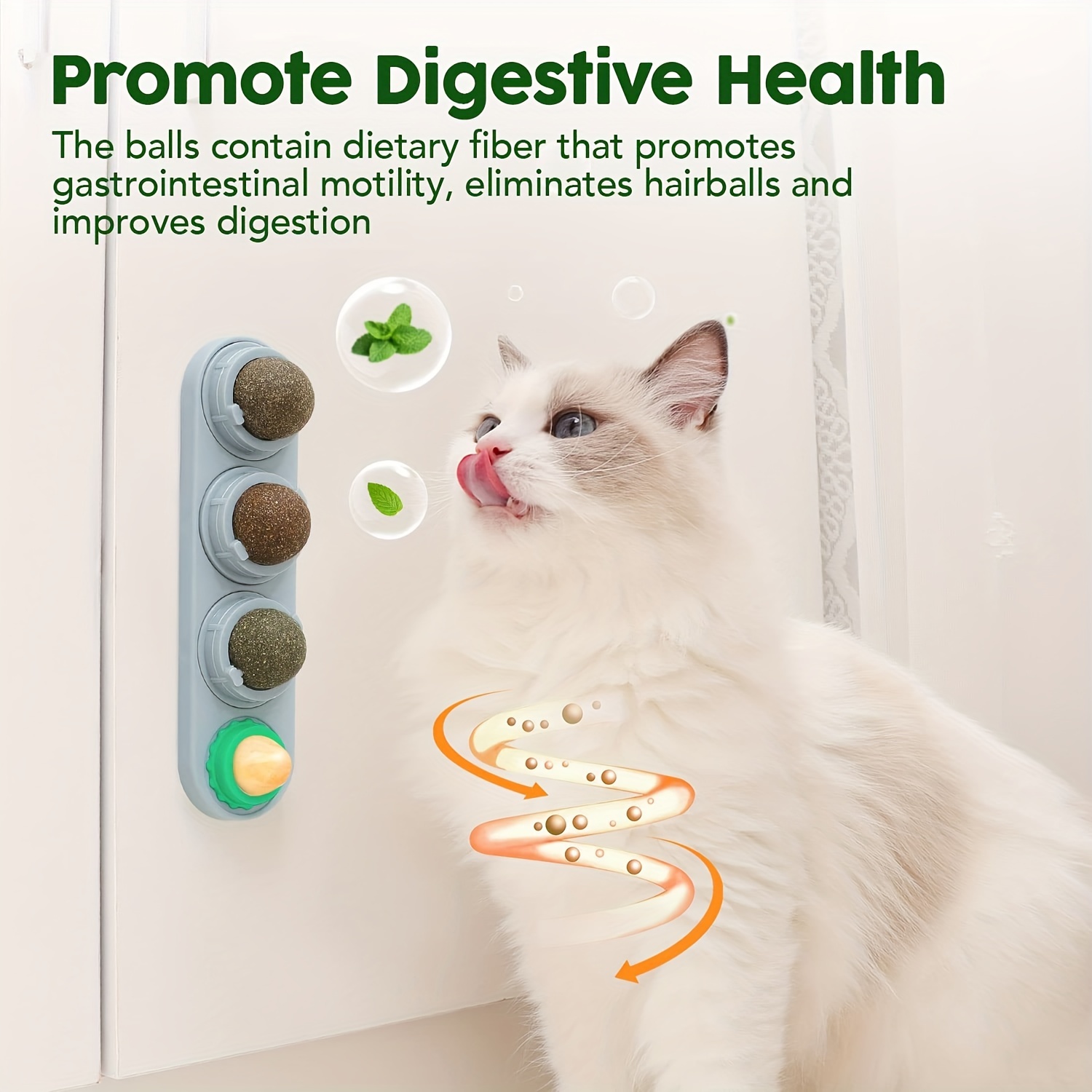 [4 Silvervine Energy Ball Toys] 4 Pet Herb Silvervine Ball Toys, Extra Cat Energy Ball, Consumable Cats Lick Kitten Chew, Teeth Cleaning Dental Wall Treats, Concentrated Flavor for All Breeds