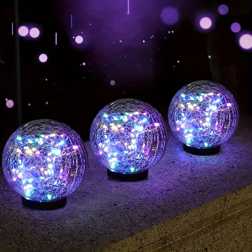 4pcs Solar Powered Crack Glass Ball Outdoor Lights – Garden Pathway Lights With Ground Stakes, 2-Hour Charge, 6-8 Hour Use, Ideal For Valentine'S Day & Wedding Decor, Patio, Lawn & Walkway Gift Idea