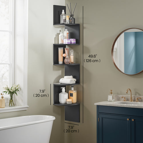 [Durable and Sturdy] Crafted from high-quality materials, each shelf of this 5-tier corner shelf unit can support up to 13.2 lb, providing reliable support for your books, decor, or toiletries