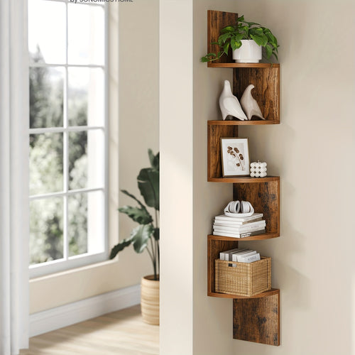[Modern Design] With its zigzag design and heather greige curved shelves, this wall-mounted corner shelf exudes a charming rustic touch to enhance your living room, bathroom, and home office