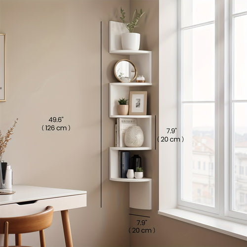 5-Tier Space-Saving Wall-Mounted Corner Shelf Organizer - Floating Radial Design Storage Shelf - for Bedroom, Bathroom, Living Room & Home Office
