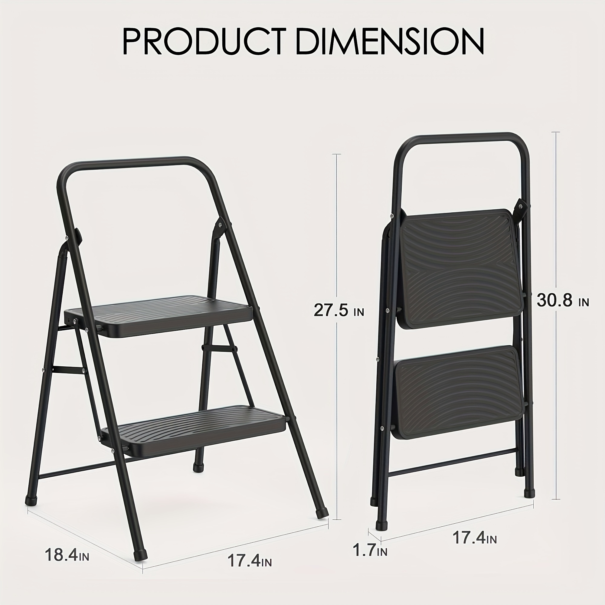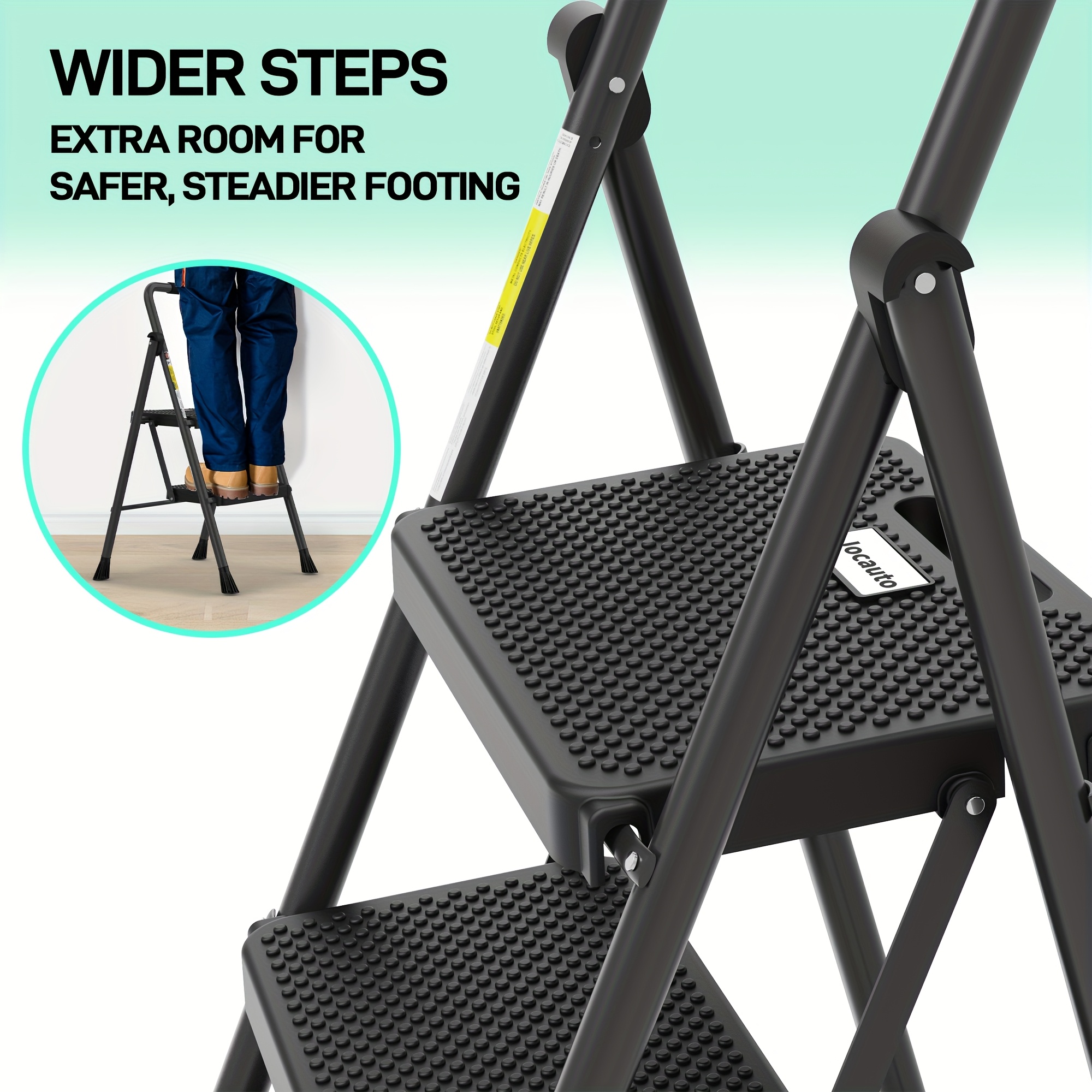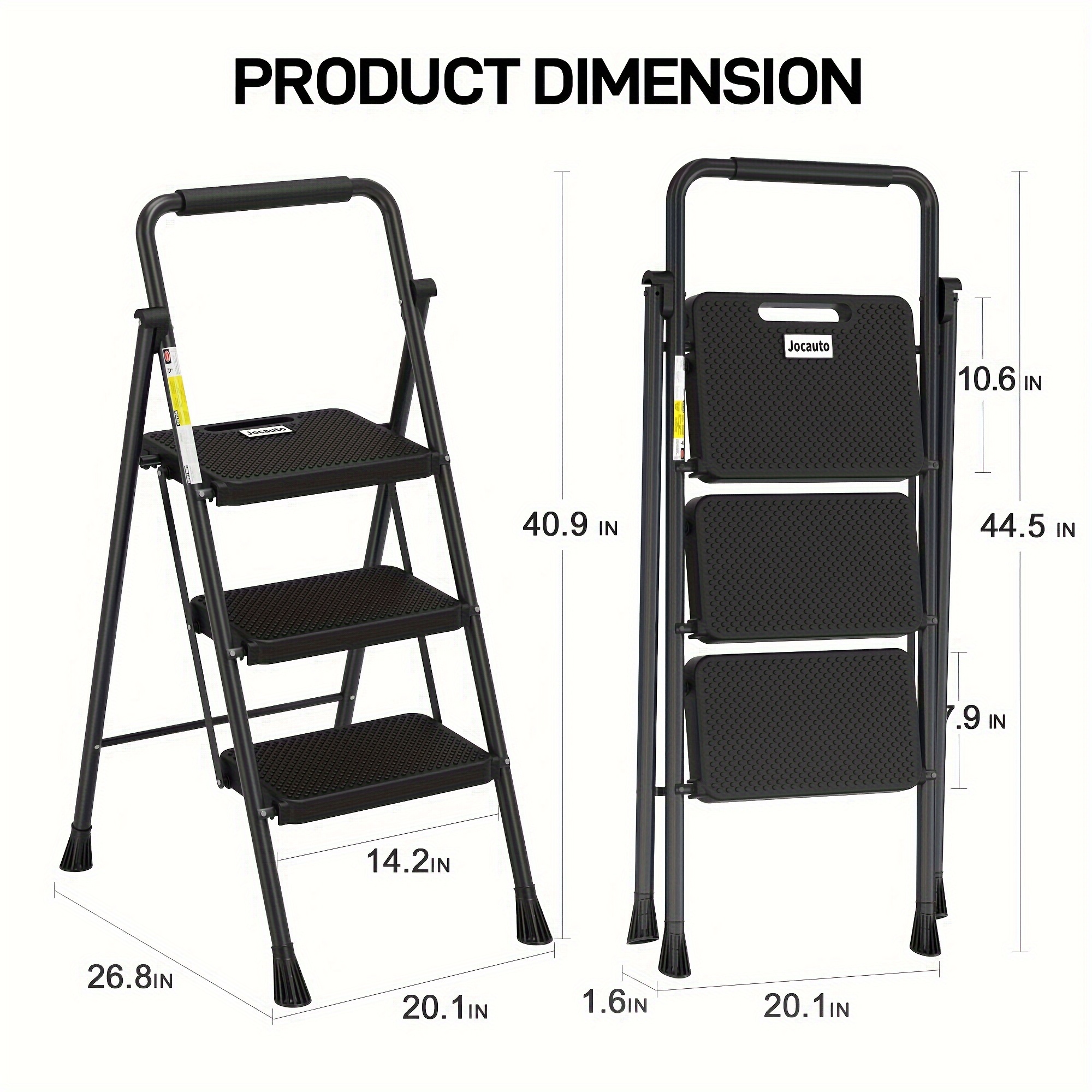 800lbs Capacity Heavy Duty 2/3 Step Ladder - Folding Step Stool With Comfort Handgrip - Great For Home, Kitchen, And Office