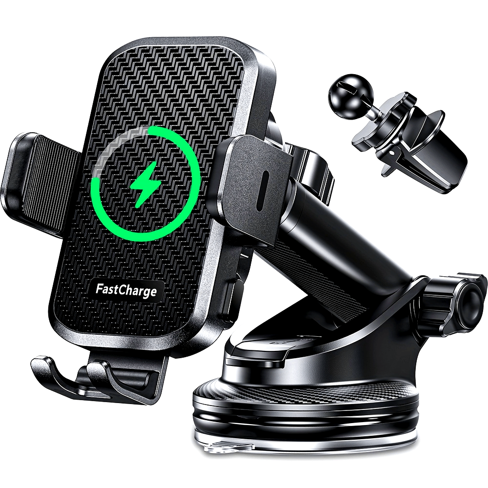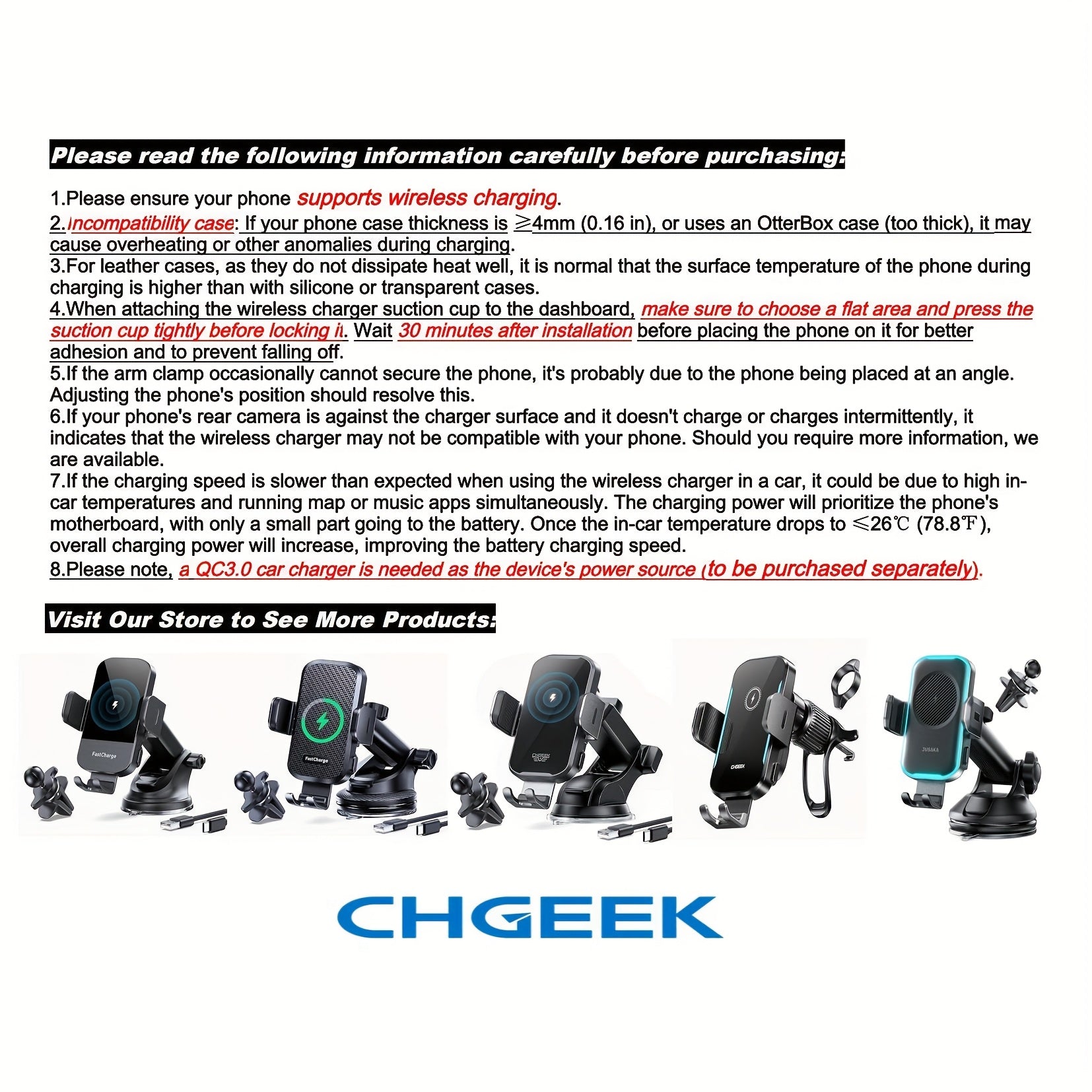 CHGeek 3-in-1 Wireless Car Charger, Car Phone Holder, 15W Fast Charge -Dashboard/Vent/Desktop, Universal Phone Clamp For IPhone & Android (No Slip! 30-Min Quick Install)