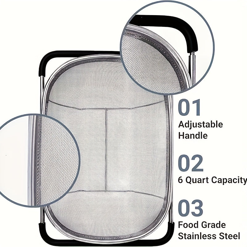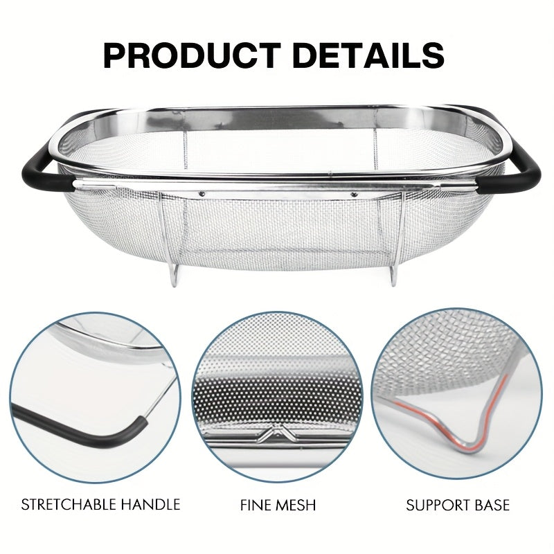 Expandable Stainless Steel Filter with Fine Mesh And Drain Basket - Suitable for Vegetables And Fruits, Kitchen Essentials, Food Safety, Filtered Vegetables, father gift