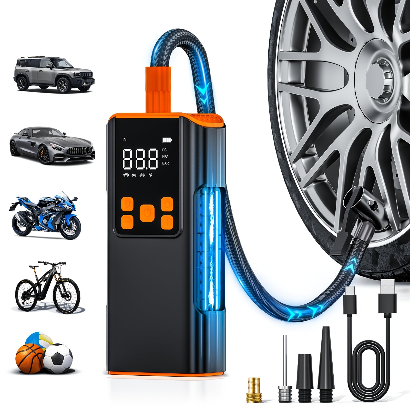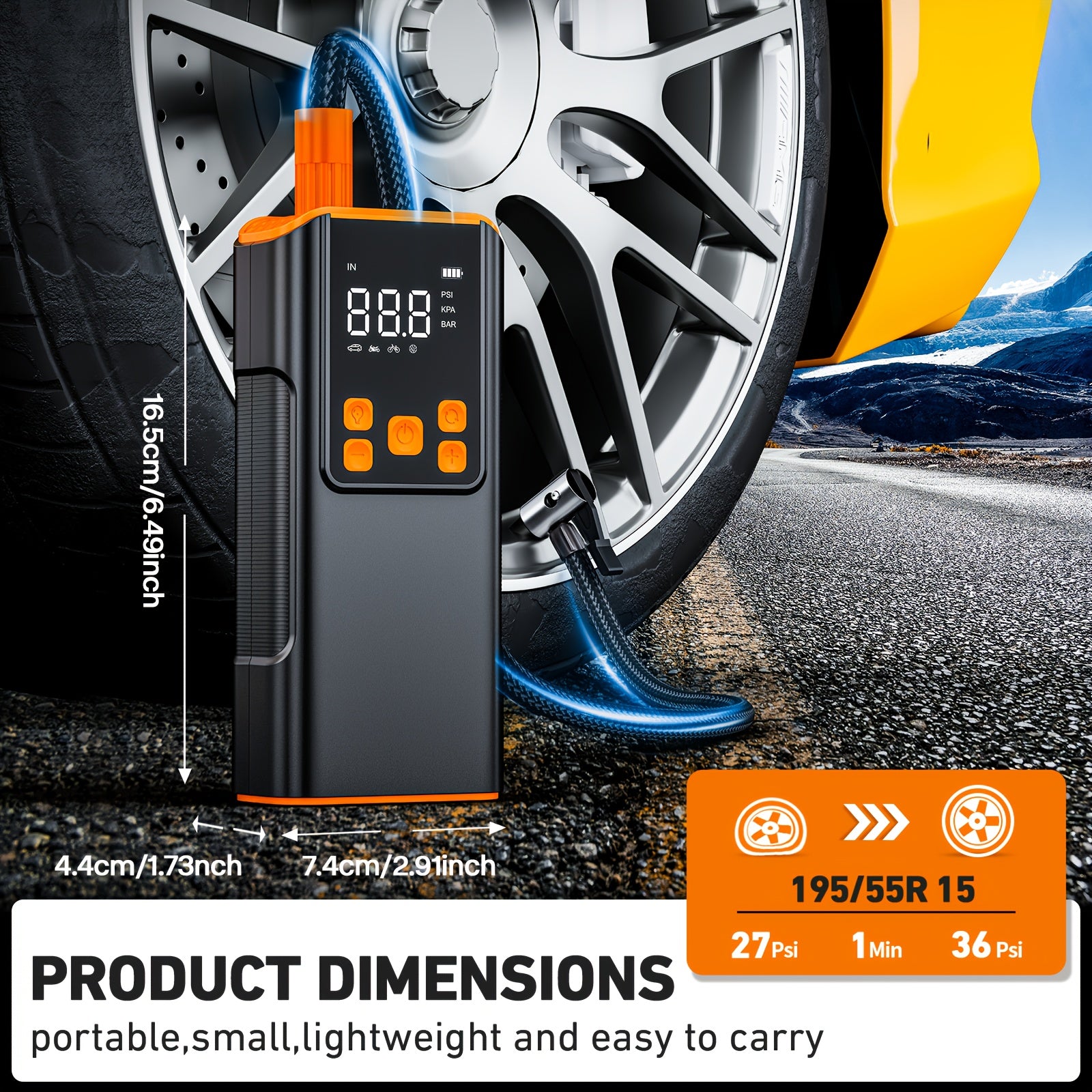 Portable Air Compressor - 150PSI Tire Inflator with Pressure Gauge, High-Capacity, 3X Faster for Cars, Bikes, Motorcycle Tires