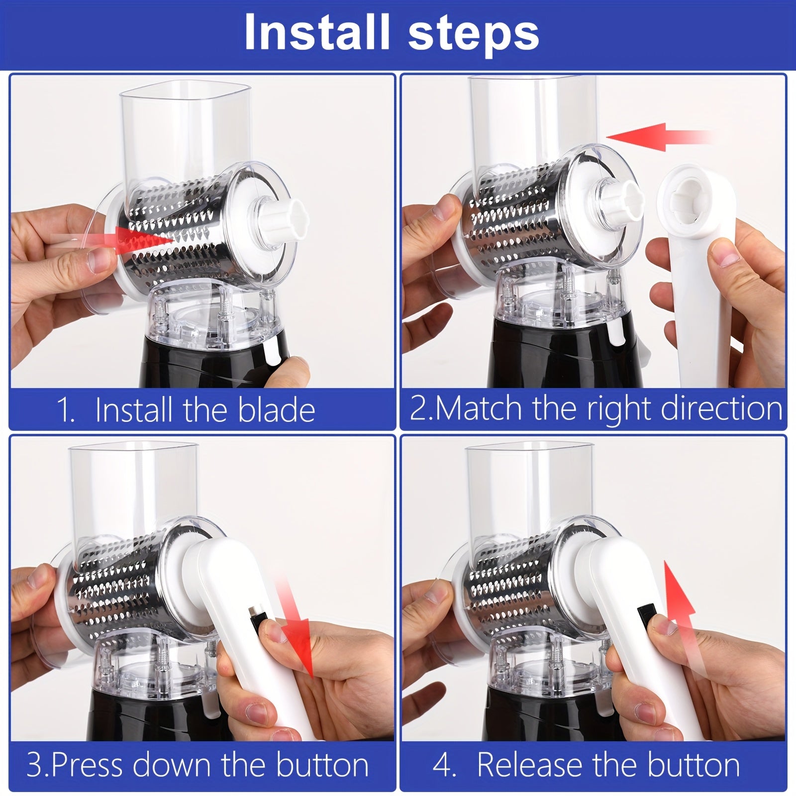 Rotary Cheese Grater and Vegetable Slicer - Kitchen Mandoline with 3 Interchangeable Blades, Easy-to-Clean for Fruits, Potatoes, Carrots, Nuts
