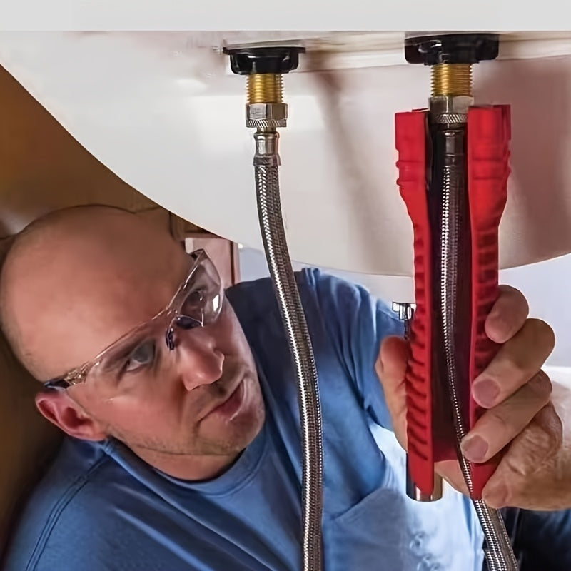Versatile 8-in-1 Red Aluminum Multifunctional Sink Wrench - Durable Rubber Grip Handle for Easy Bathroom Installation & Repair