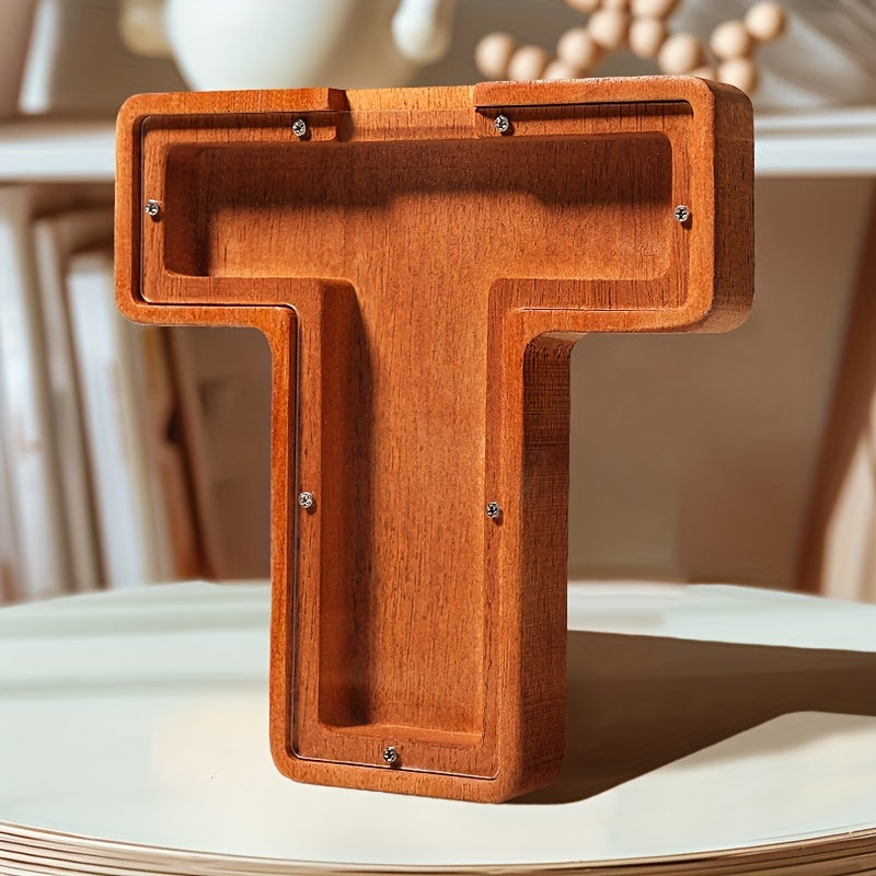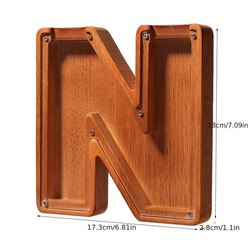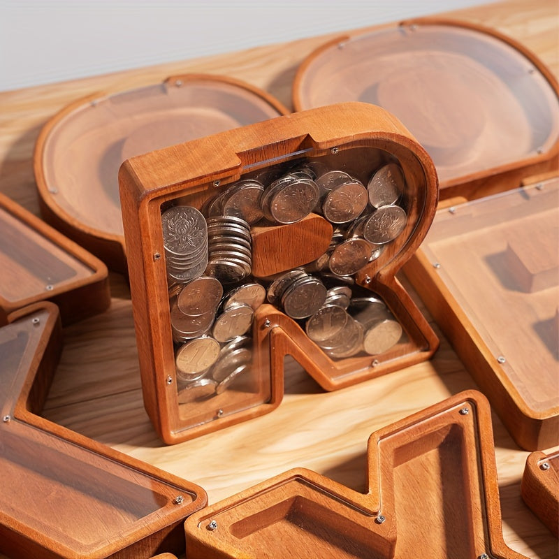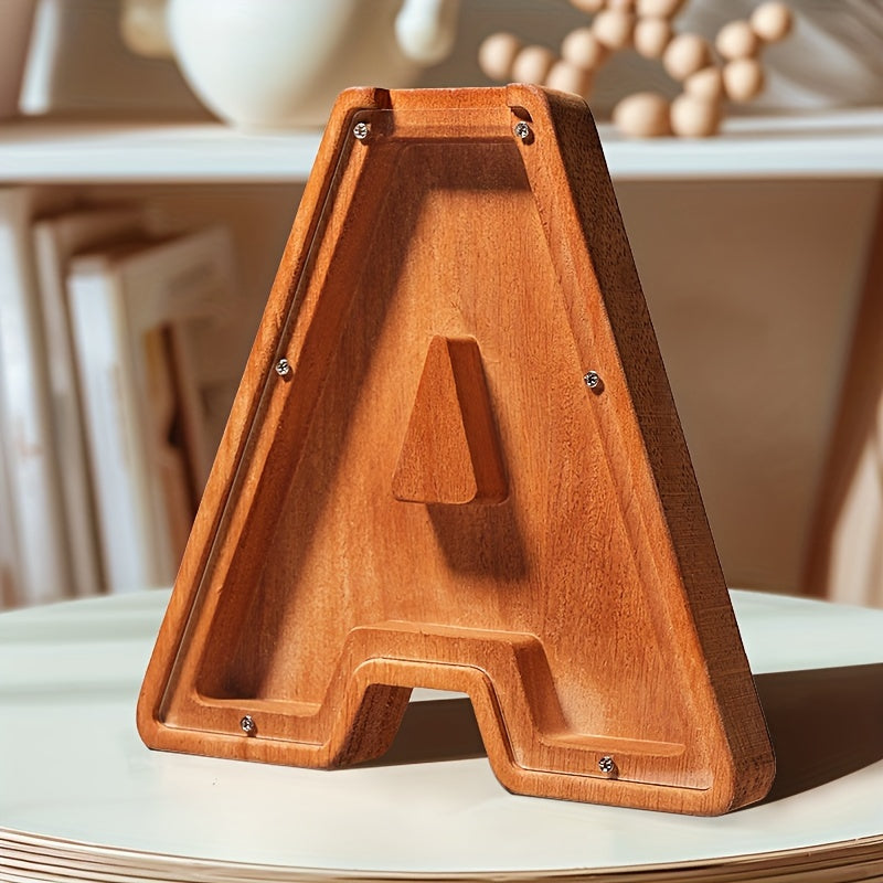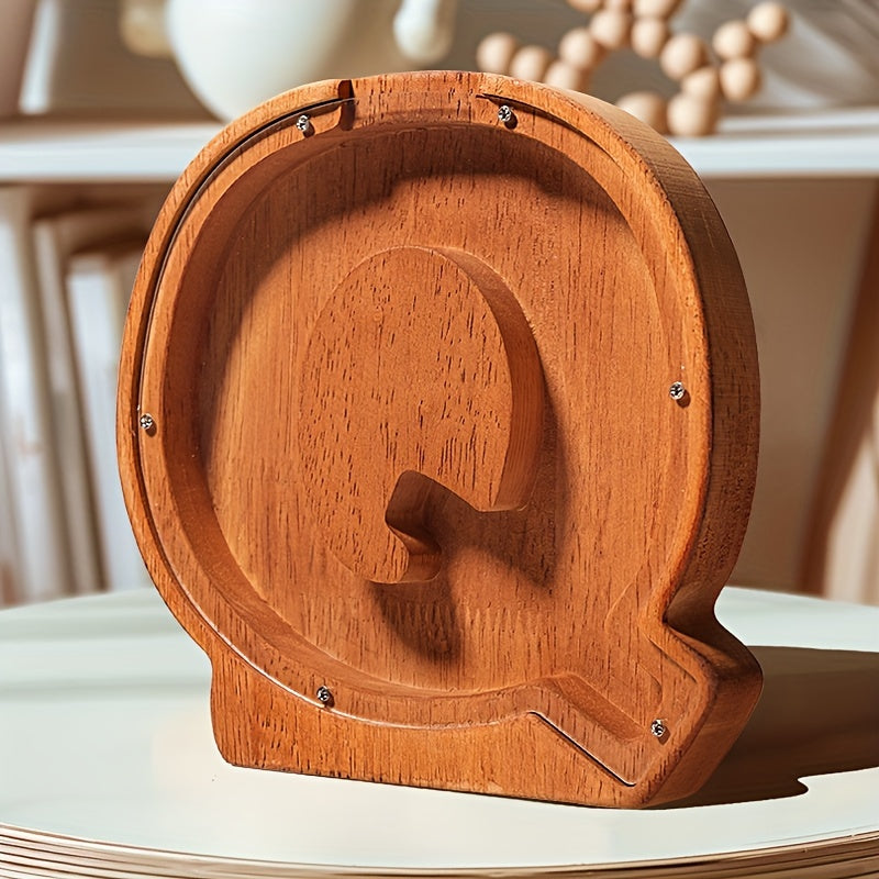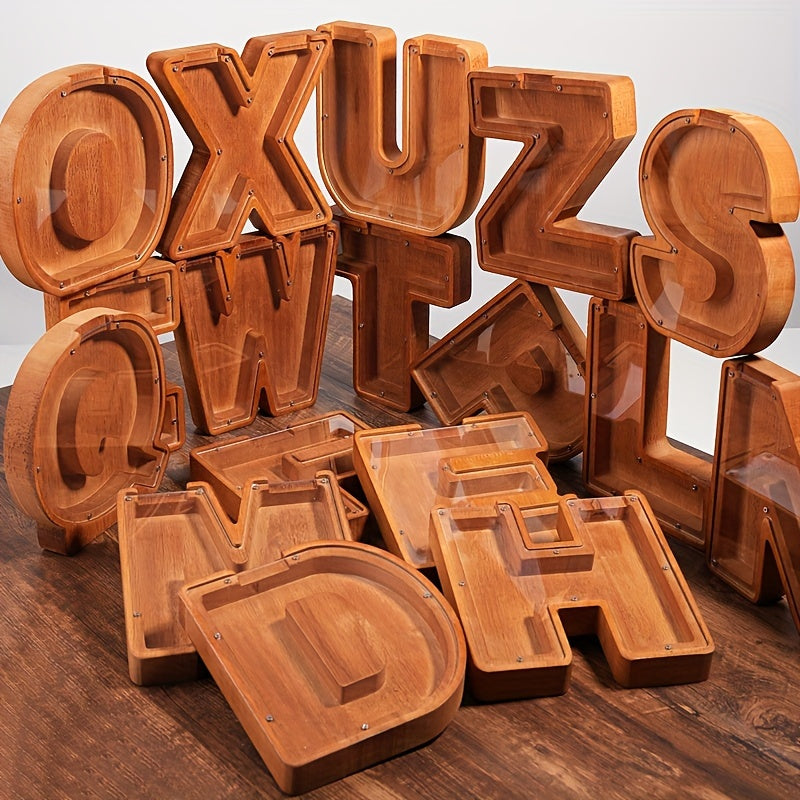 Wooden Lettered Piggy Bank, Personalized Lettered Bank, Wooden Bank 26 English Alphabet Bank, Home Decoration Children's Gifts Halloween、Christmas Gift、Thanksgiving Day easter gift