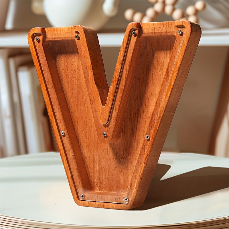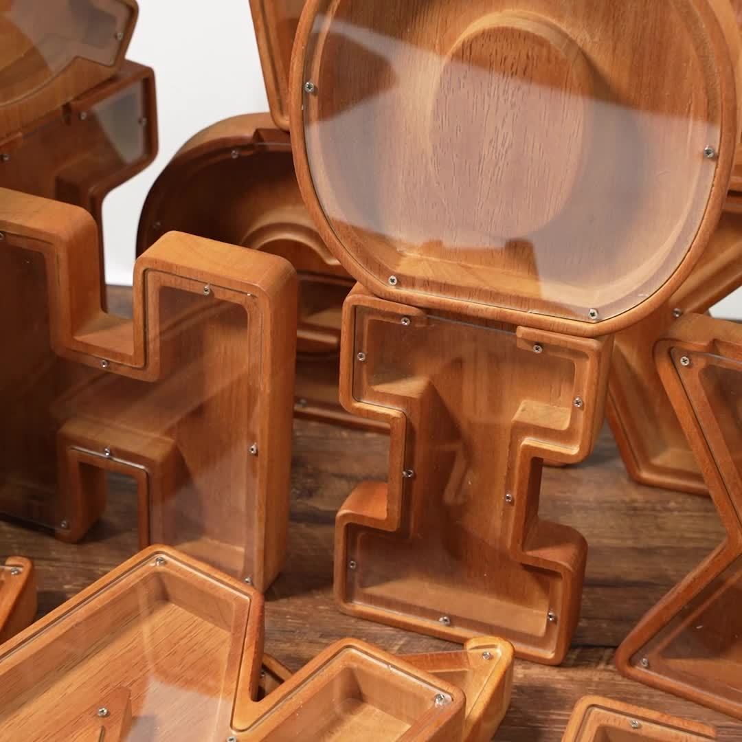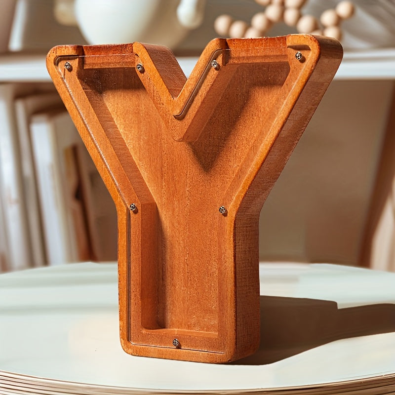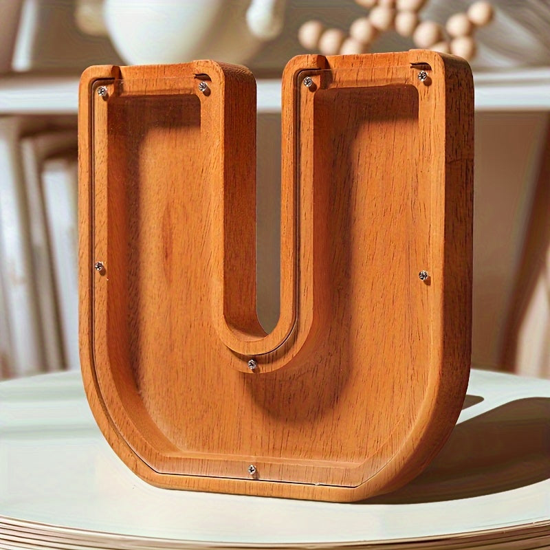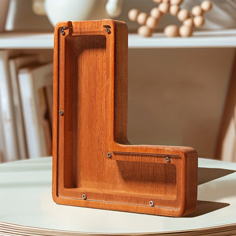 Wooden Lettered Piggy Bank, Personalized Lettered Bank, Wooden Bank 26 English Alphabet Bank, Home Decoration Children's Gifts Halloween、Christmas Gift、Thanksgiving Day easter gift
